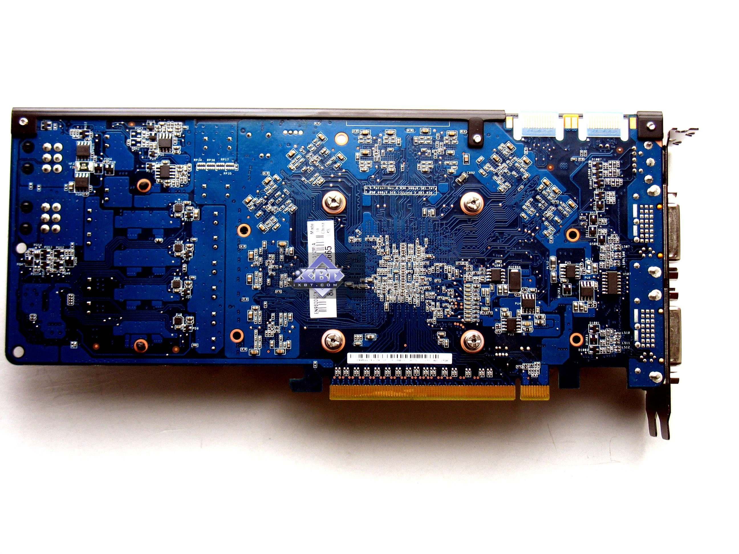 | Карта имеет 2x1024 МБ памяти GDDR5 SDRAM, размещенной в 16 микросхемах ( по 8 на лицевой и оборотной сторонах PCB) Микросхемы памяти Hynix (GDDR5). Микросхемы раcсчитаны на максимальную частоту работы в 1000 (4000) МГц. | ![]() |