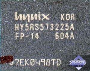 | Карта имеет 256 МБ памяти GDDR3 SDRAM, размещенной в 4-х микросхемах на лицевой стороне PCB. Микросхемы памяти Hynix (GDDR3). Время выборки у микросхем памяти 1,4 ns, что соответствует частоте работы 700 (1400) МГц. | ![]() |