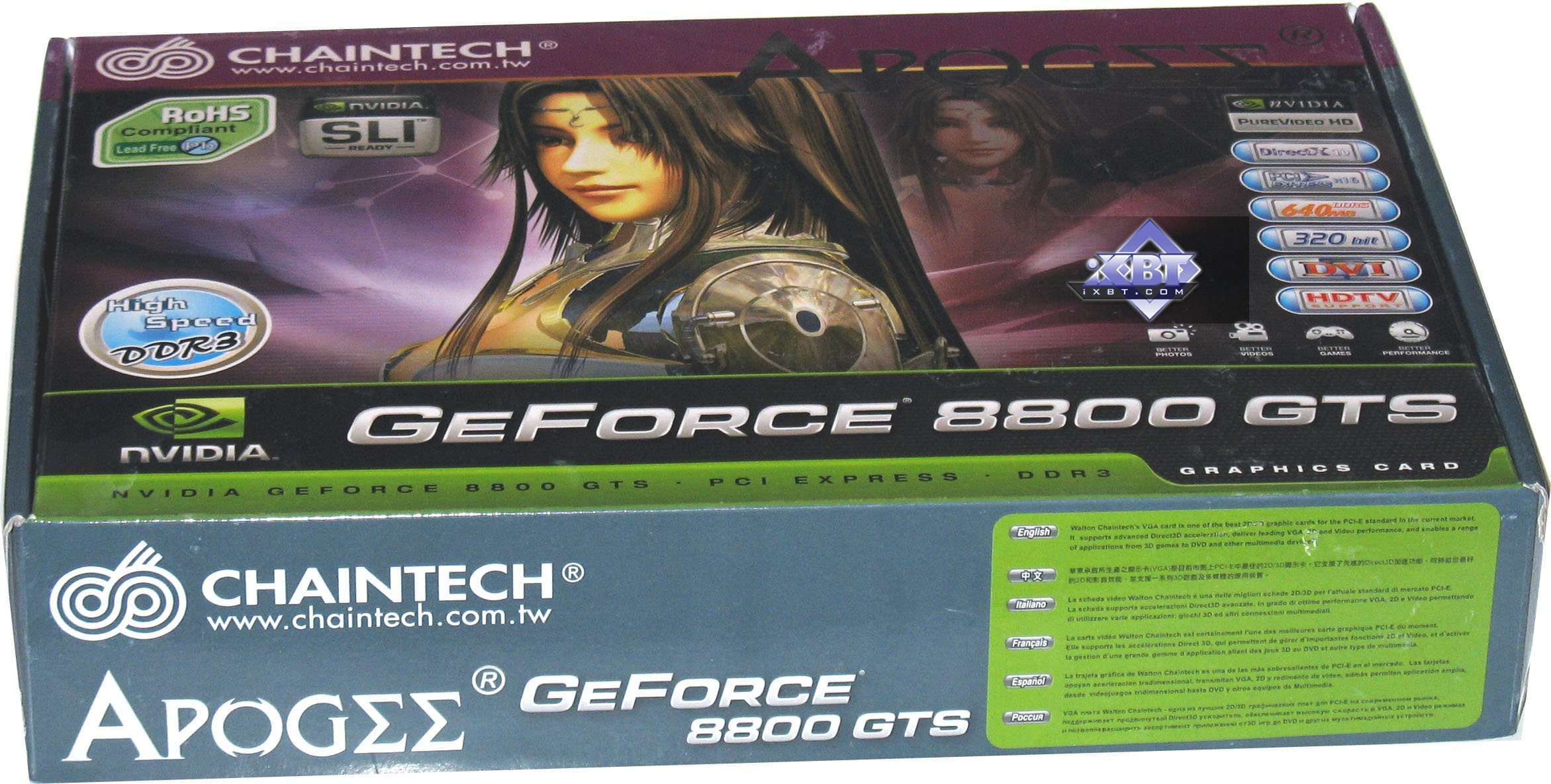 Chaintech Apogee Geforce 8800 GTS 640MB PCI-E - стандартный продукт, поскольку сама карта представляет собой копию референс (эталонный дизайн), да и произведена, как я уже говорил, по заказу Nvidia. То есть Chaintech имеет отношение только к комплектации карты.