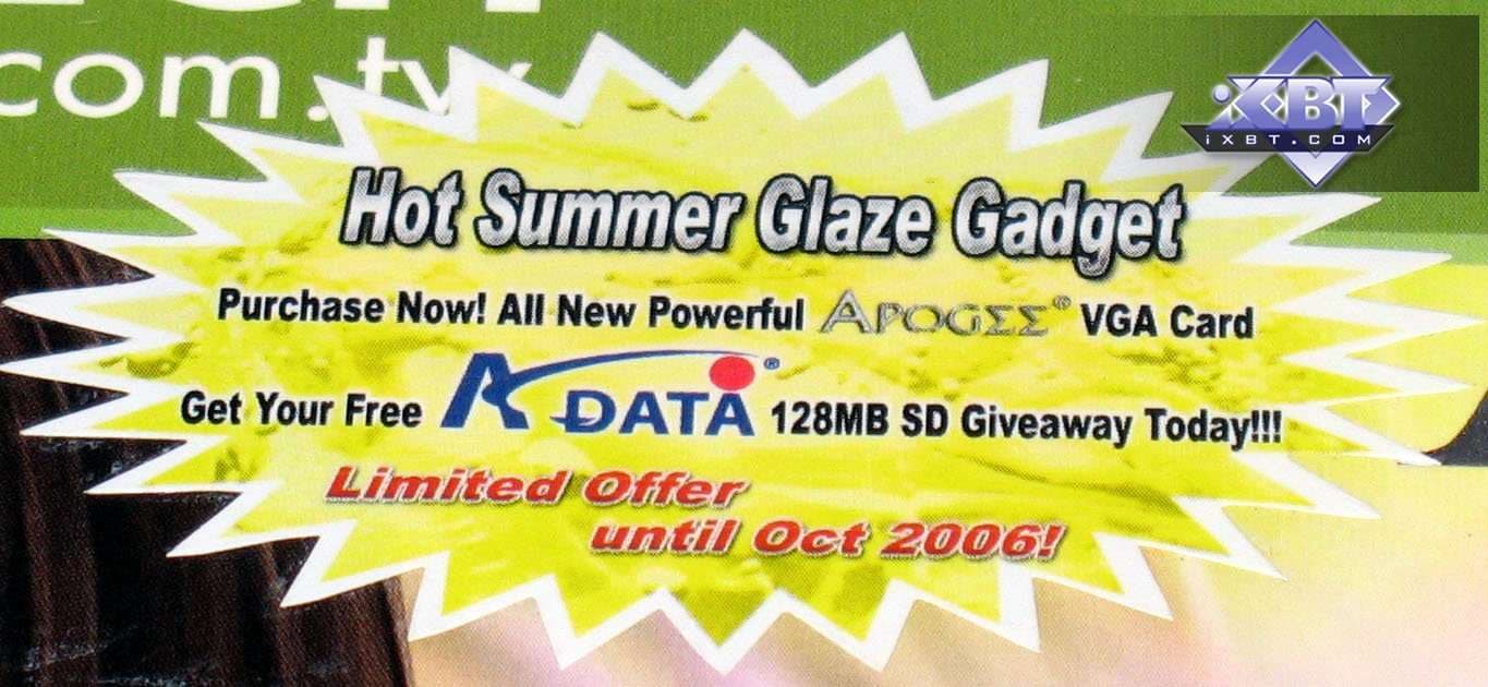 Chaintech Apogee Geforce 7600 GS 256MB PCI-E - хороший выбор для среднего ценового сегмента, поскольку мы платим за 7600 GS, а получаем, по сути, 7600 GT. Но надо смотреть на соотношения цен с X1650 PRO, который может быть все же более выгодным.