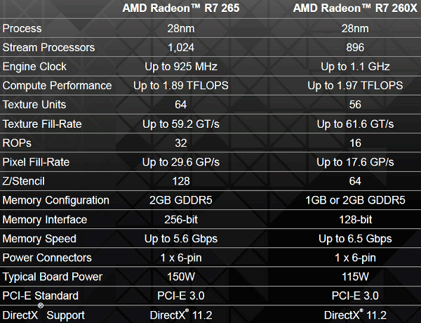 Таким решением стала модель Radeon R7 265, занявшая важное место в продуктовой линейке компании. После снижения цены на Radeon R7 260X до $119 и Radeon R9 270 до уровня в $179, между ними образовалось некоторое пространство для маневра. Которое в AMD решили заполнить видеокартой Radeon R7 265, основанной на графическом процессоре Pitcairn. По сути, если считать Radeon R9 270 вариацией Radeon HD 7870, то R7 265 является явным последователем дела Radeon HD 7850. По сравнению со старым аналогом, новинка получила прирост частоты GPU и видеопамяти, точно как и R9 270 по сравнению с HD 7870. Поэтому Radeon R7 265 будет несколько быстрее, чем HD 7850, чтобы предоставить уровень производительности между моделями R7 260X и R9 270.