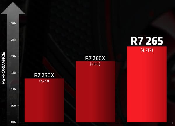 Компания AMD считает, что новая модель Radeon R7 265 обеспечивает достаточно высокую производительность даже в самых современных играх для большинства небогатых игроков, давая им высокую эффективность и отличное сочетание производительности и цены. По сравнению с конкурирующей моделью Nvidia Geforce GTX 750 Ti, главным преимуществом новинки должна стать несколько более высокая производительность примерно за те же деньги.