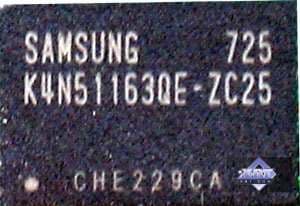 | Карта имеет 256 МБ памяти GDDR2 SDRAM, размещенной в восьми микросхемах на лицевой стороне PCB. Микросхемы памяти Samsung (GDDR2). Время выборки у микросхем памяти 2,5 ns, что соответствует частоте работы 400 (800) МГц. | ![]() |