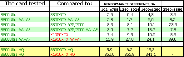 Превосходство над рядовым 8800 GTX в режиме HQ доходит до 20%! Здесь уже сильно играет и увеличенная ПСП.
