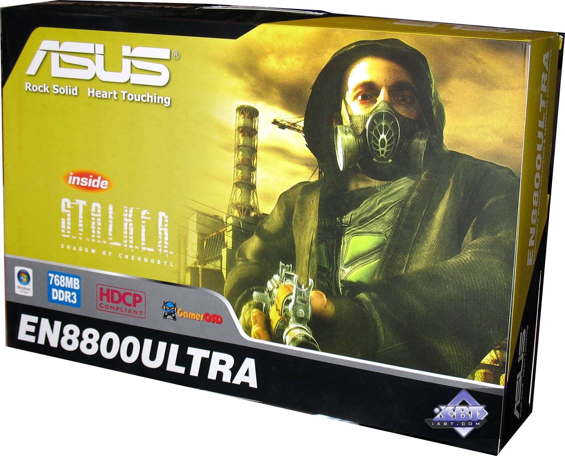 Asus EN8800Ultra (Geforce 8800 Ultra) 768MB PCI-E — по сути самый быстрый на сегодня ускоритель, но и самый дорогой. Напомню еще раз, что перед нами обычная референс-карта, ничем, кроме комплекта, от аналогов от других компаний не отличающаяся.