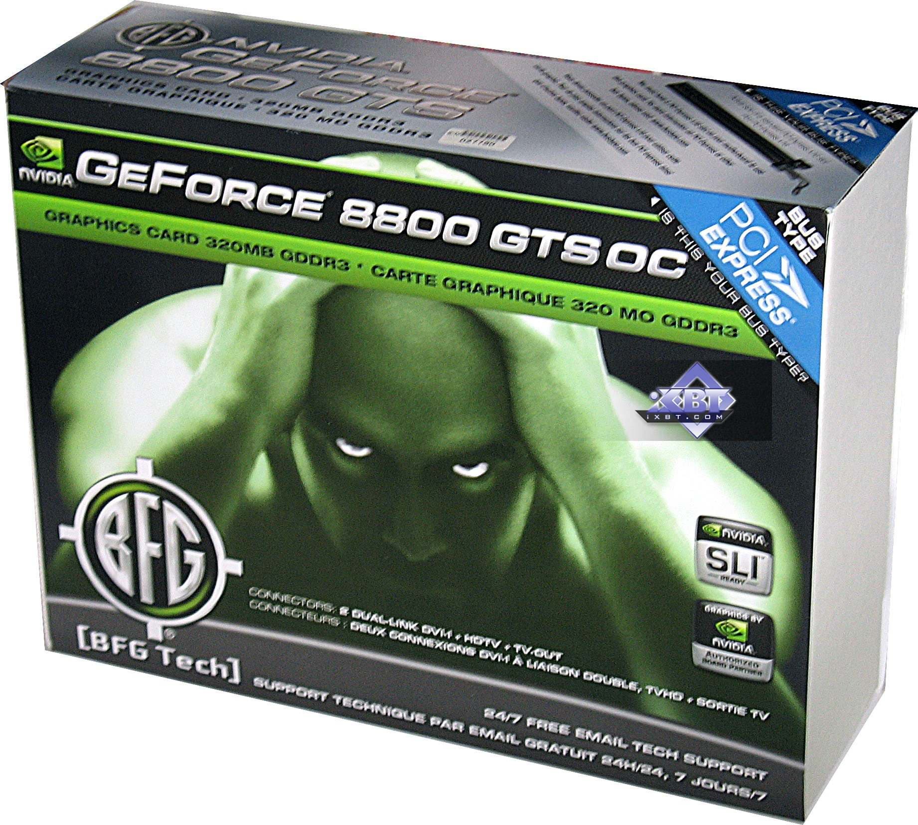 BFG Geforce 8800 GTS Overclocked 320MB PCI-E — отличный продукт. Сразу скажу, что если увидите эту карту в продаже, и цена при этом не будет сильно завышена, то берите и не думайте. Комплект поставки, 5 лет гарантии, повышенные частоты… Все это в плюс этой карте. Смотрите на цены… И делайте выбор. Не забудьте про геймерское предупреждение на коробке (человек с лицевой стороны явно говорит: будешь сутками играть — таким же станешь).