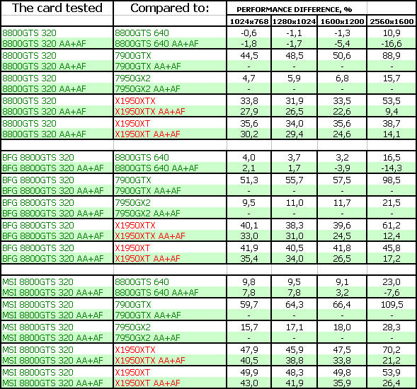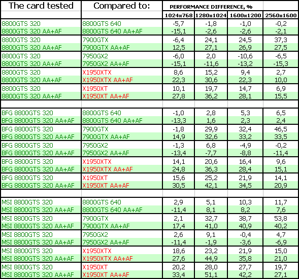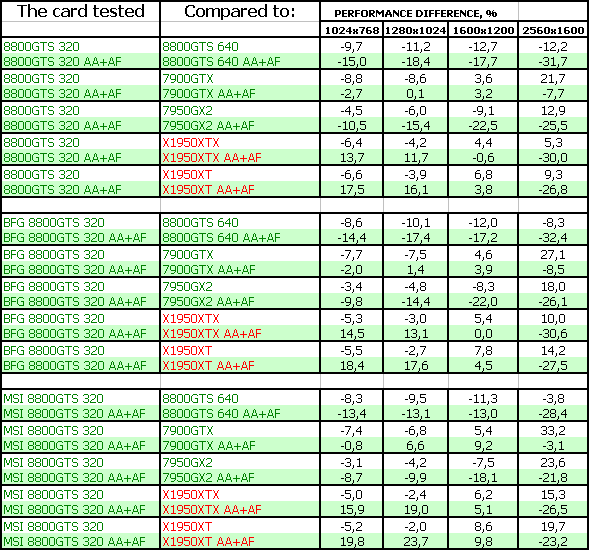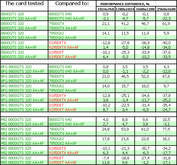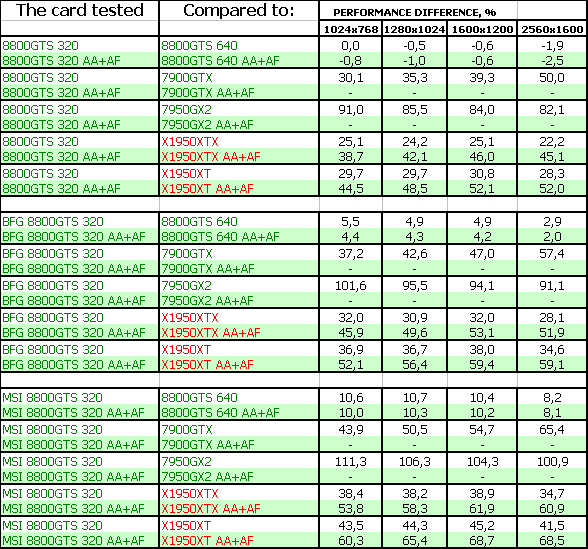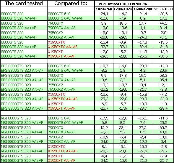 Увы, но даже самый быстрый 8800 GTS 320 от MSI проиграл конкуренту в лице RADEON X1950.
