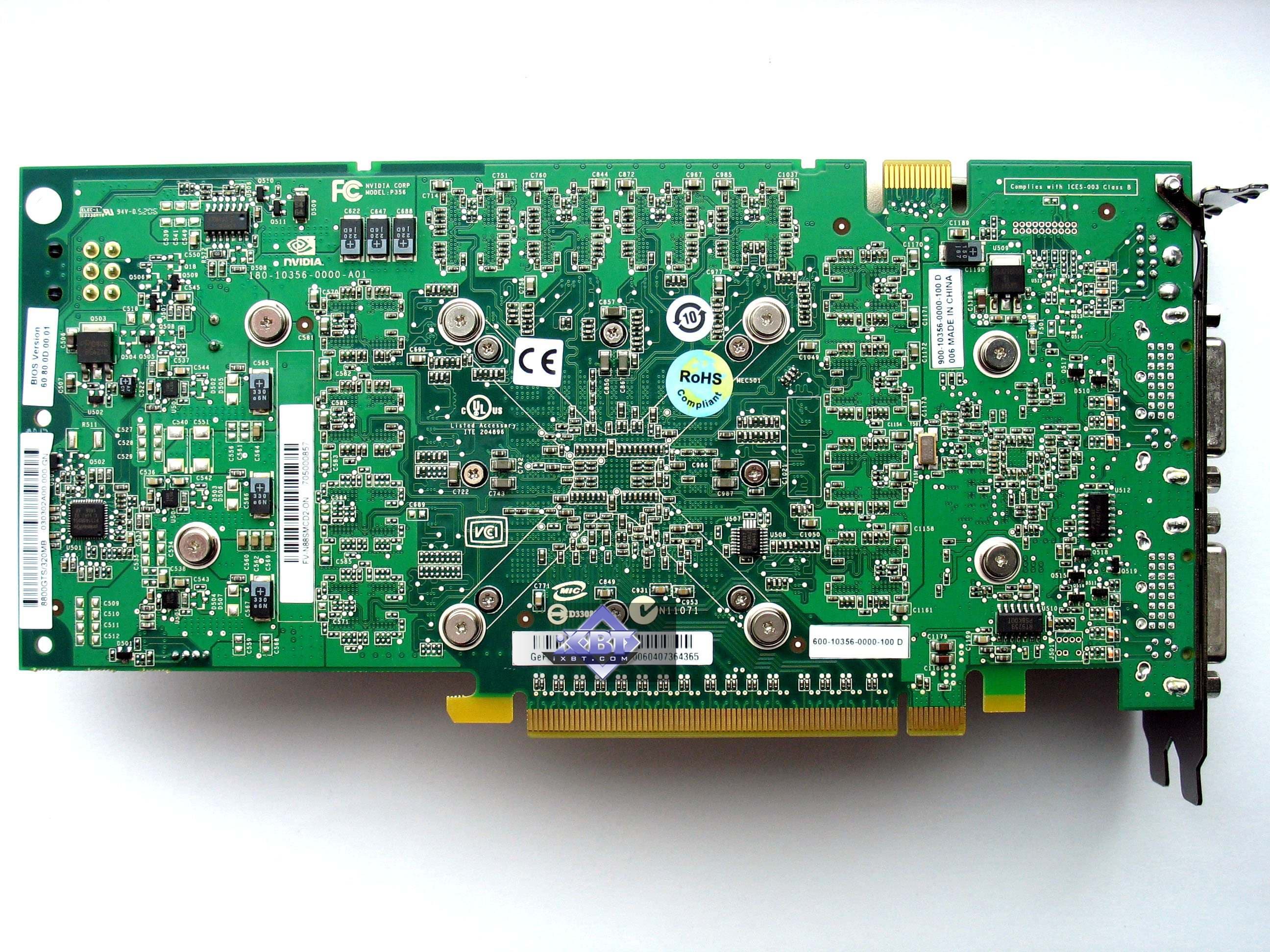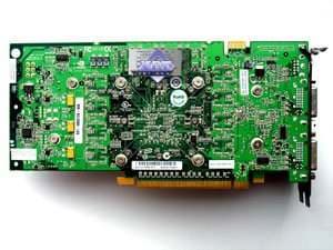 | Каждая карта имеет 320 МБ памяти GDDR3 SDRAM, размещенной в 10-ти микросхемах на лицевой стороне PCB. Микросхемы памяти Hynix (GDDR3). Время выборки у микросхем памяти 1,1 ns, что соответствует частоте работы 900 (1800) МГц. | ![]() |
