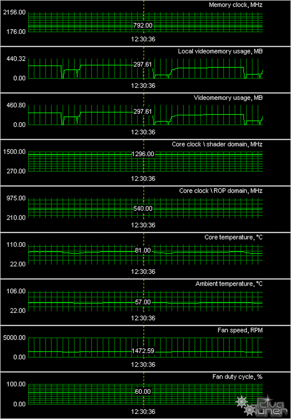 Мы провели исследование температурного режима у этих карт с помощью утилиты RivaTuner (автор А.Николайчук AKA Unwinder) и получили следующие результаты: