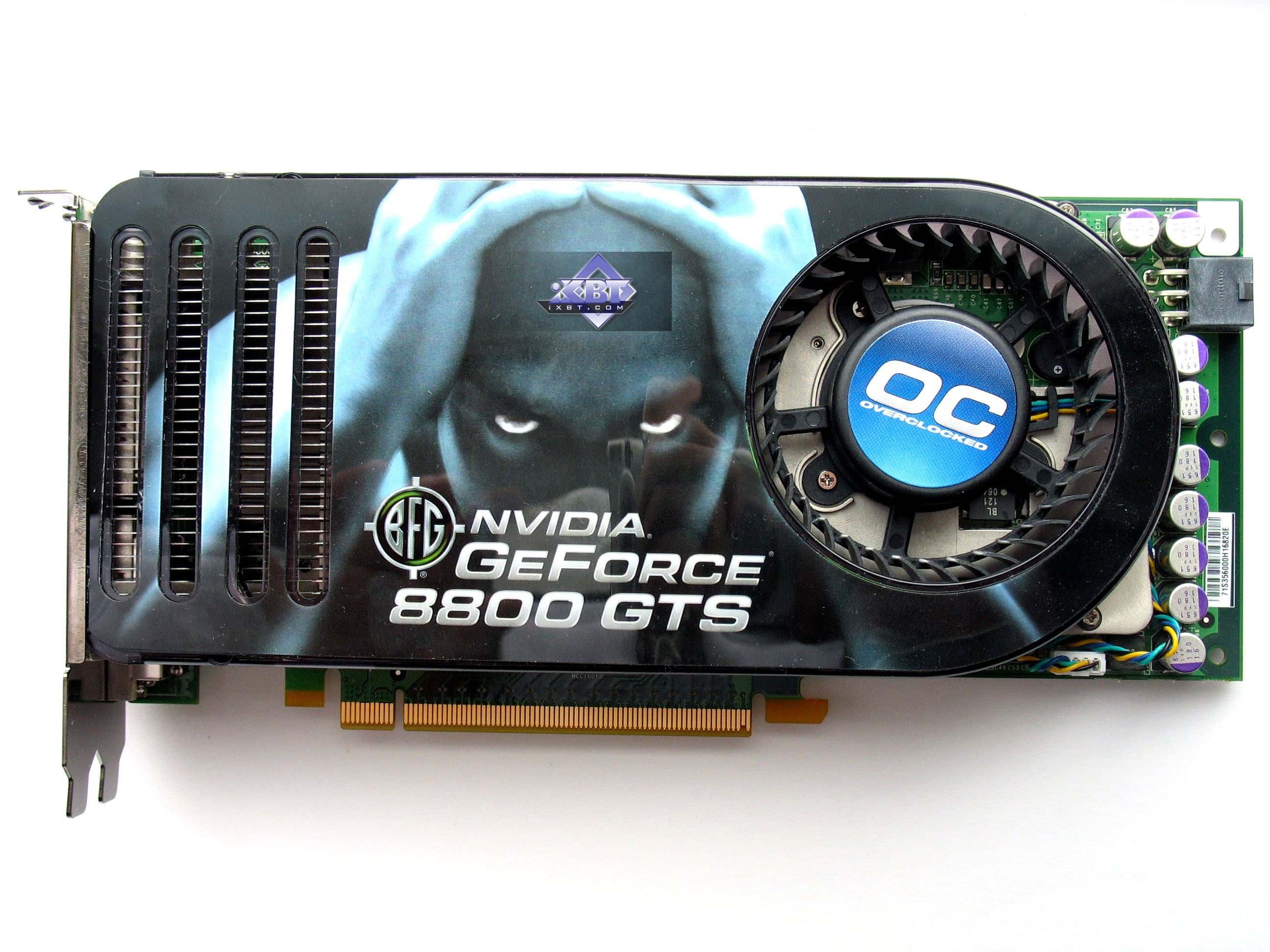 - Geforce 8800 GTS 640MB PCI-E, 96 потоковых процессоров, шина обмена с памятью 320 бит, 512/1600 MHz, 399-449 долларов США;