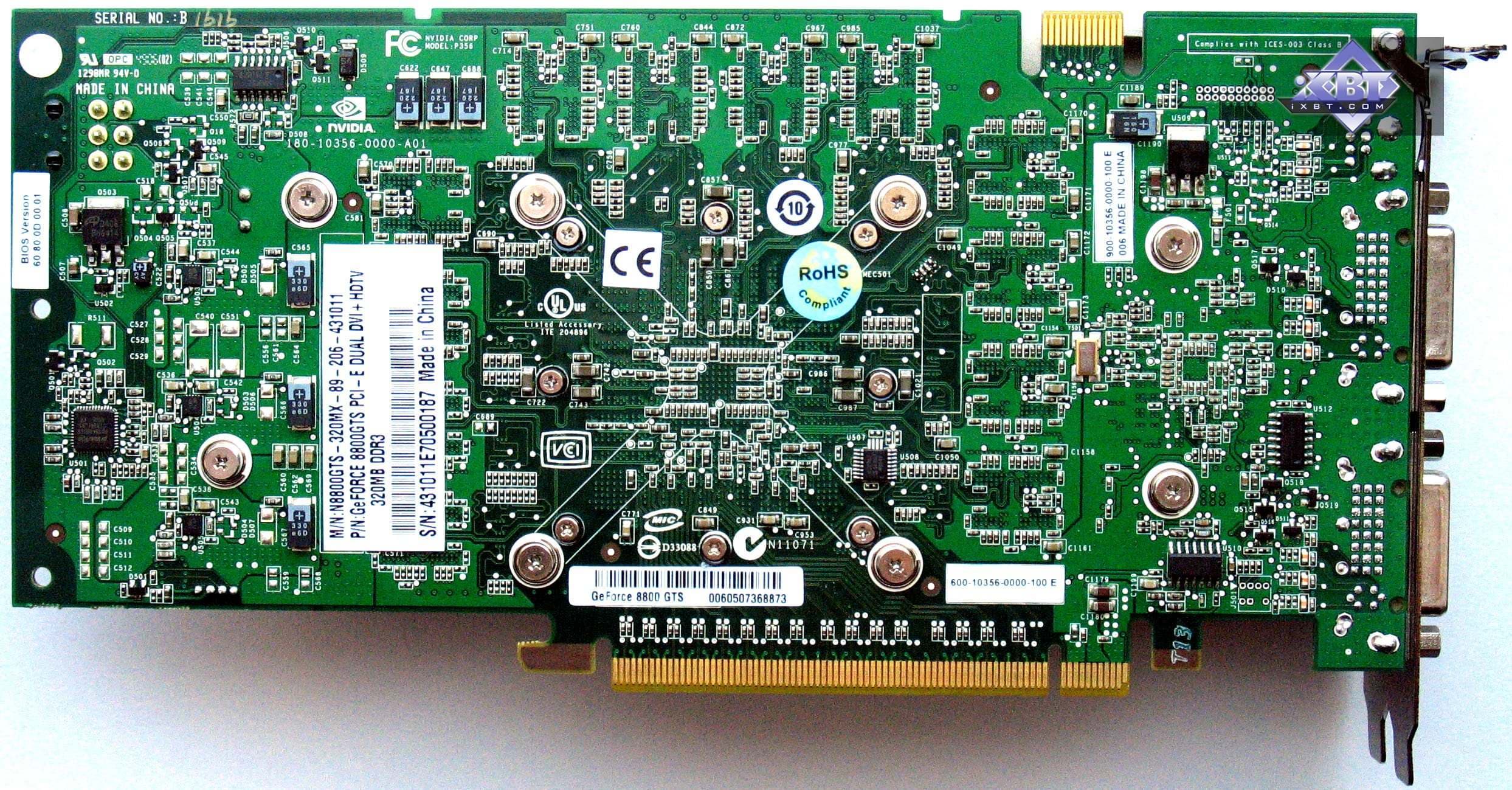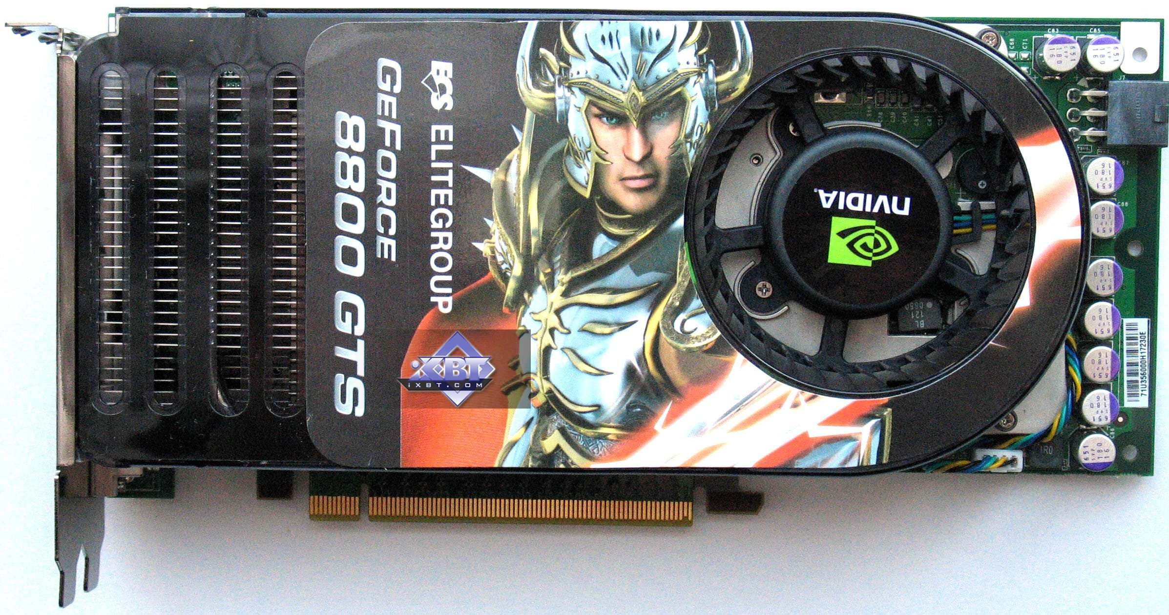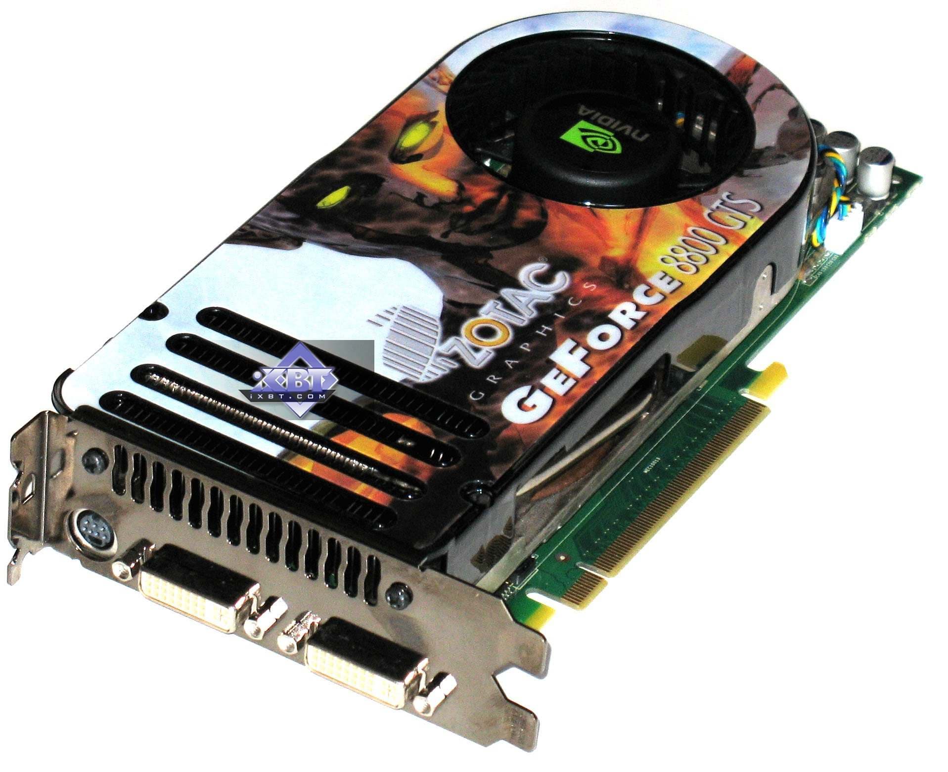 - Geforce 8800 GTS 640MB PCI-E, 96 потоковых процессоров, шина обмена с памятью 320 бит, 512/1600 MHz, 399-449 долларов США;