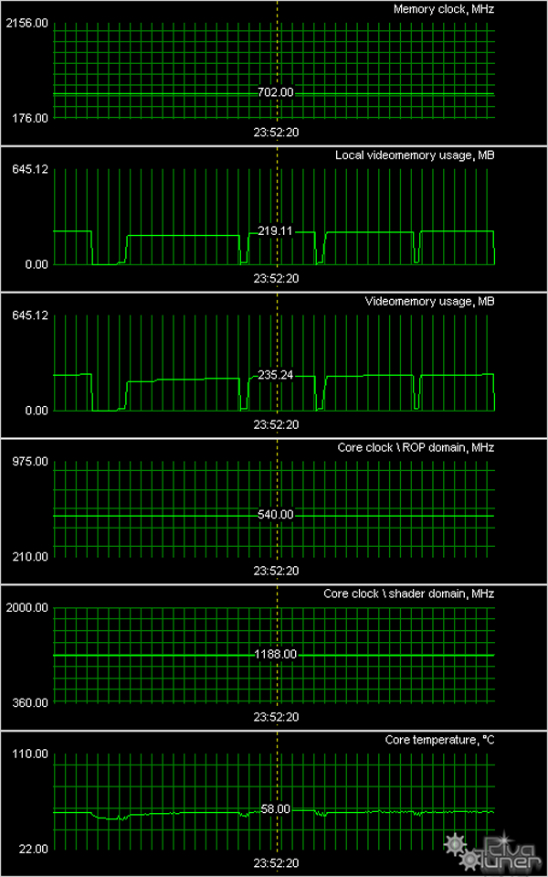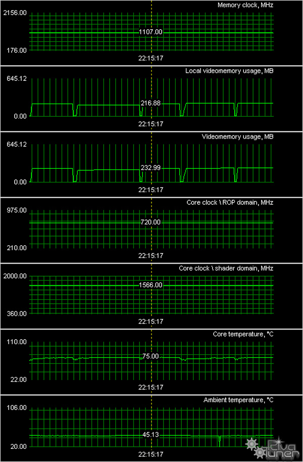 Мы провели исследование температурного режима с помощью утилиты RivaTuner (автор А.Николайчук AKA Unwinder) и получили следующие результаты: