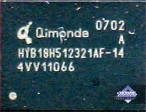 | Карта имеет 256 МБ памяти GDDR3 SDRAM, размещенной в 4-х микросхемах на лицевой стороне PCB. Микросхемы памяти Qimonda (GDDR3). Время выборки у микросхем памяти 1,4 ns, что соответствует частоте работы 700 (1400) МГц. | ![]() |