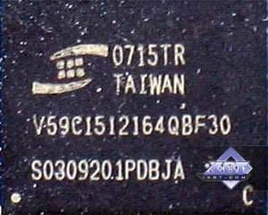 | Карта имеет 512 МБ памяти GDDR2 SDRAM, размещенной в 8-ми микросхемах на лицевой стороне PCB. Микросхемы памяти ProMOS (GDDR2). Время выборки у микросхем памяти 3,0 ns, что соответствует частоте работы 333 (666) МГц. | ![]() |