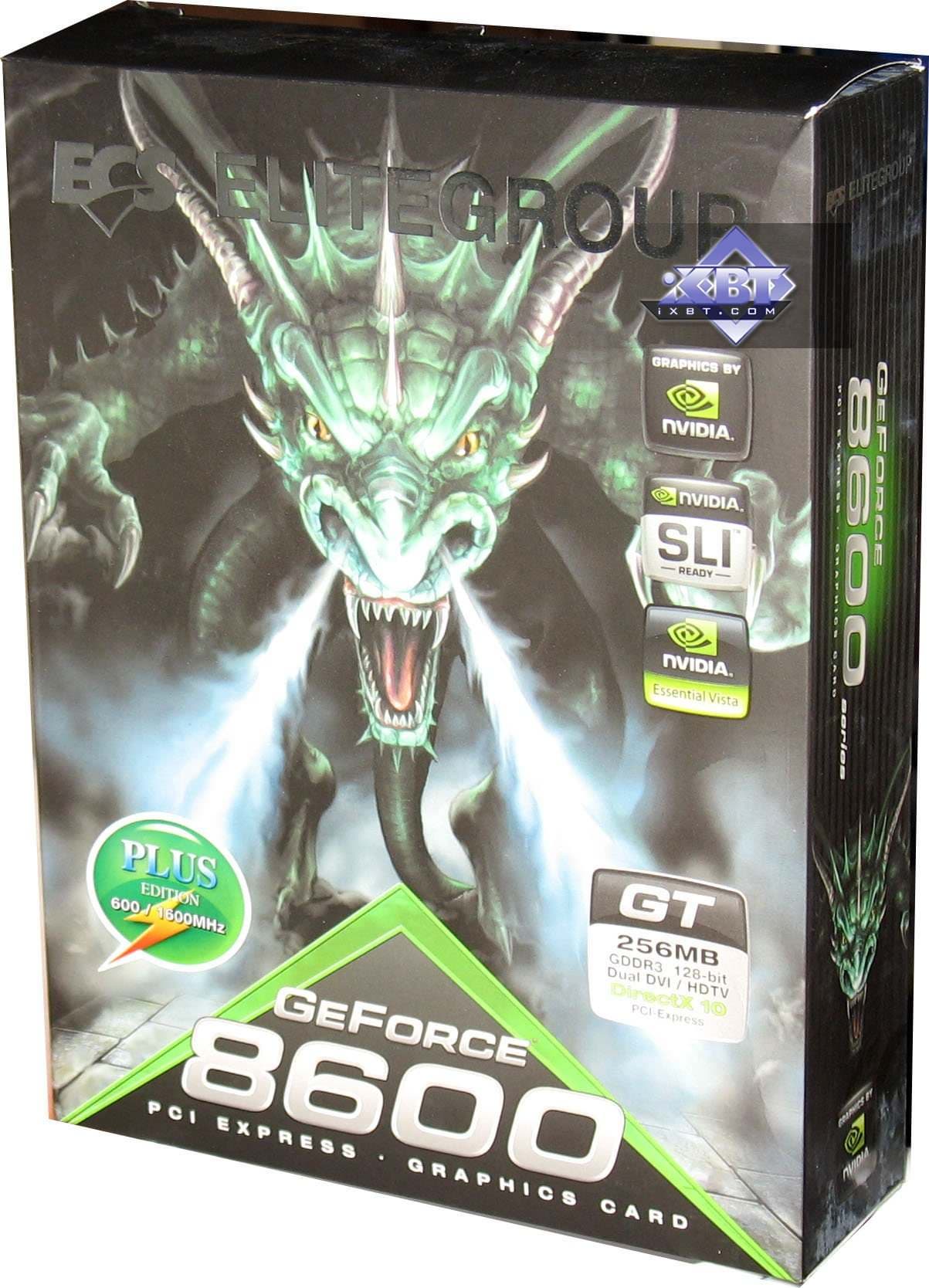 ECS/Elitegroup Geforce 8600 GT Plus Edition 256MB PCI-E — продукт, стоящий между 8600GT и 8600GTS по скорости, однако из-за несовершенства системы охлаждения имеет очень высокий нагрев, что является минусом. Впрочем, не критично. Главное — нет шума.