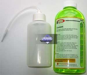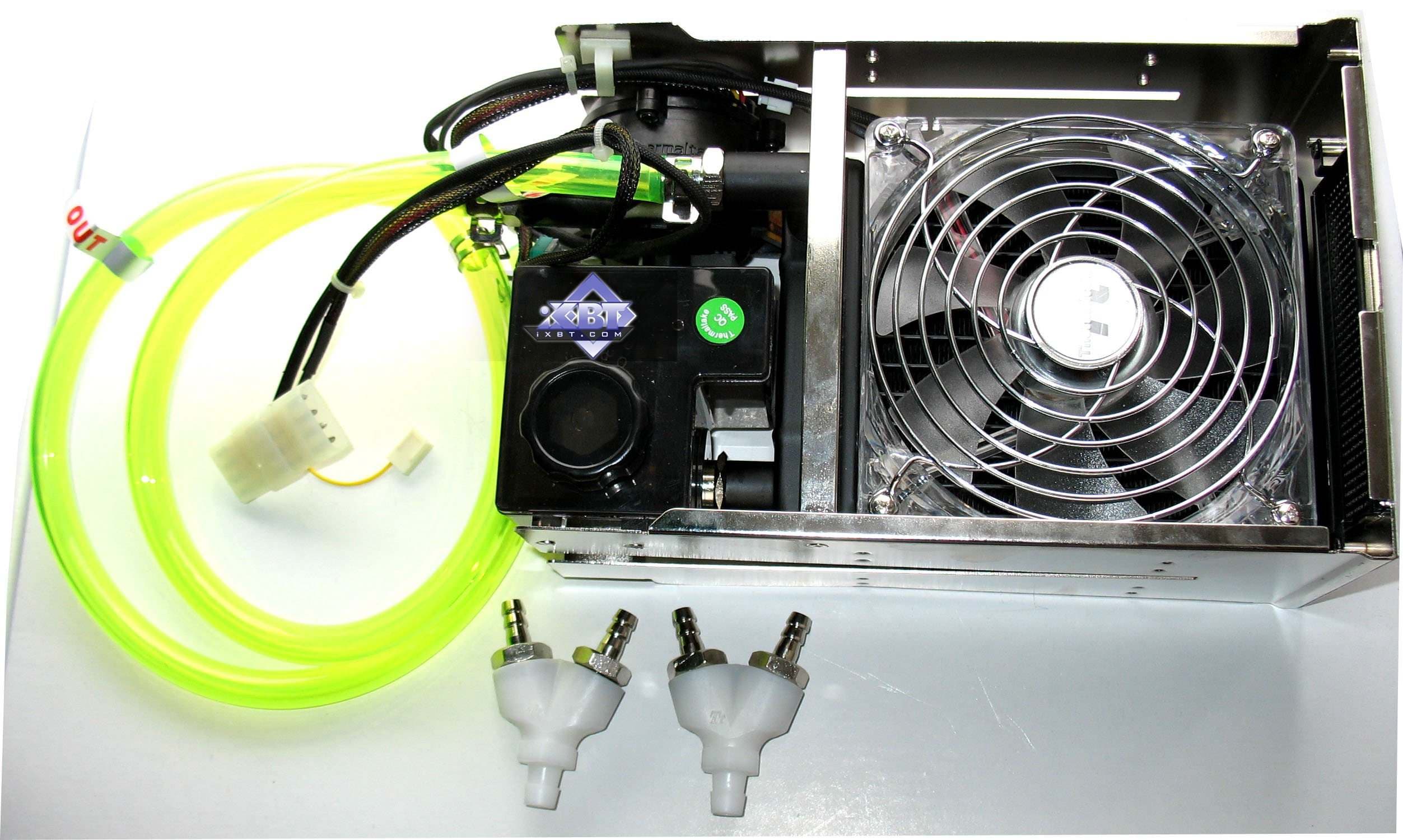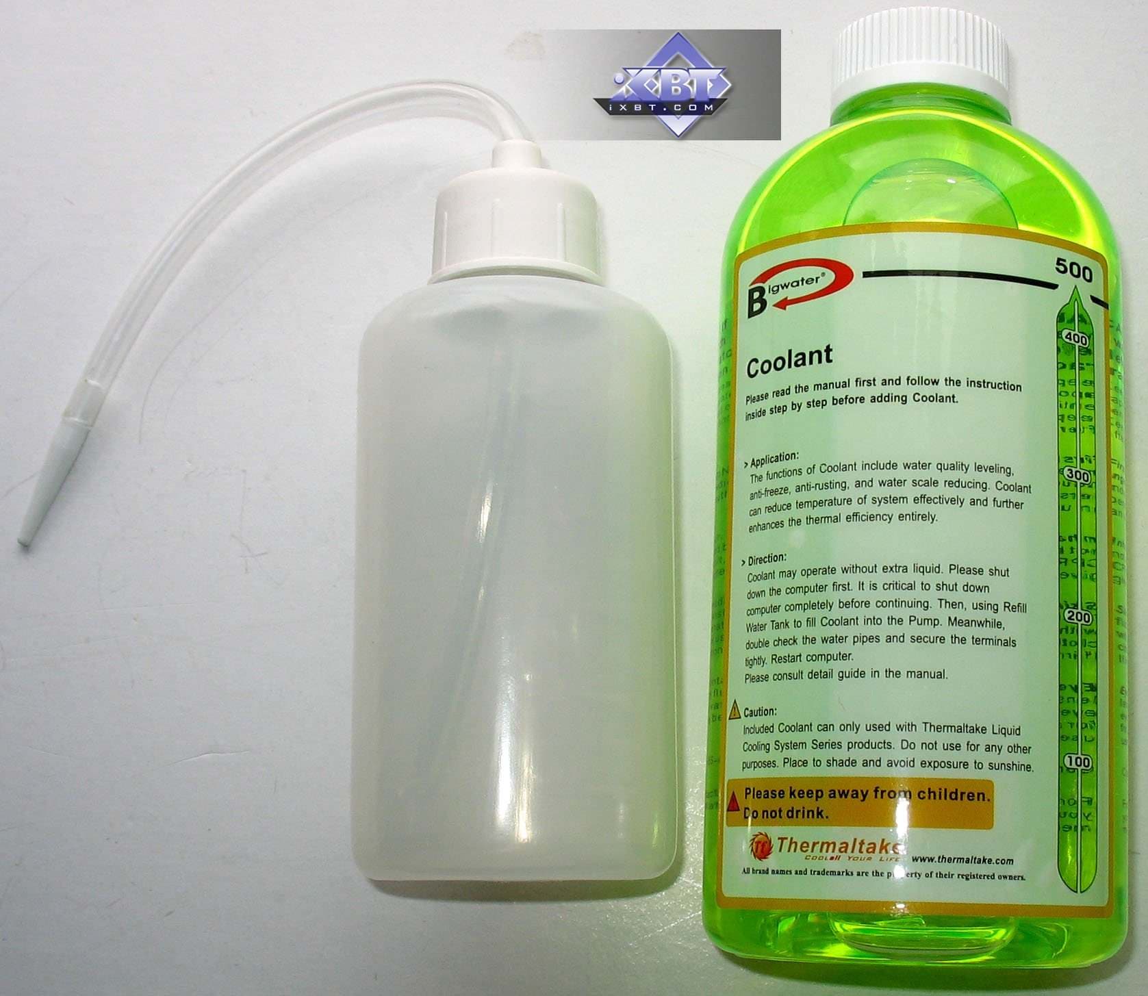 Есть еще одна разница между двумя вышеприведенными решениями. Если в случае с Zotac жидкость уже находится внутри СО, и нет никакого санкционированного доступа к ней, то в случае с Hydra, охлаждающая жидкость поставляется отдельно во флаконе, и ее следует залить в емкость расширения перед эксплуатацией, и более того, не устанавливать внешний блок в системный корпус до того момента, пока жидкость не прокачается через все трубки (они прозрачные, поэтому все видно), потому что по мере прокачки требуется доливать жидкость в емкость до пропадания пузырей и полного заполнения трубок.