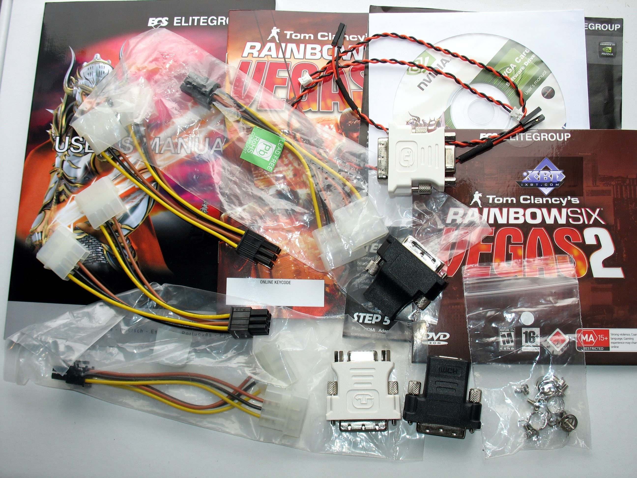 Базовый комплект поставки должен включать в себя: руководство пользователя, диск с драйверами и утилитами, переходник-адаптер DVI-to-VGA, DVI-to-HMDI адаптер, адаптер компонентного вывода (TV-out), а также разветвители внешнего питания и аудио-шнурок для соединения со звуковой картой (для передачи звука по HDMI). Далее, мы покажем, что предлагается к каждой карте дополнительно.