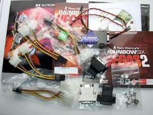 Рассмотрим ECS Hydra. Это комплект из двух совершенно одинаковых карт, объединенных одной СО производства ThermalTake, поэтому для получения мощного 3D-ускорения необходима работа технологии SLI, а значит, нужна системная плата с двумя PCI-E x16 слотами на базе чипсета от Nvidia (как известно, на других платформах внешний SLI (то есть где используется пара видеокарт) работать не будет).