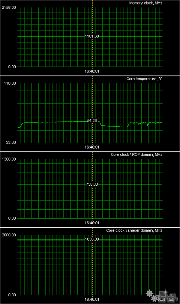 Мы провели исследование температурного режима с помощью утилиты RivaTuner (автор А. Николайчук AKA Unwinder) и получили следующие результаты: