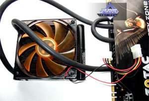 Поэтому представлены с «водянками» не топовые продукты, а на ступень ниже — из среднего класса. Но все равно интересно посмотреть — насколько будет быстрее тандем из двух 9800 GTX+, чем GTX 280/4870 X2, а также что дает водяная СО карте от Zotac.