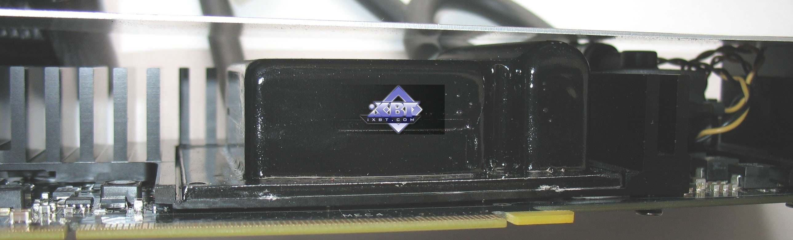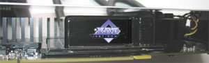 | Каждая карта имеет по 512 МБ памяти GDDR3 SDRAM, размещенной в 8 микросхемах на лицевой стороне PCB Микросхемы памяти Samsung (GDDR3). Время выборки у микросхем памяти 0.8 ns, что соответствует частоте работы 1200 (2400) МГц. | ![]() |