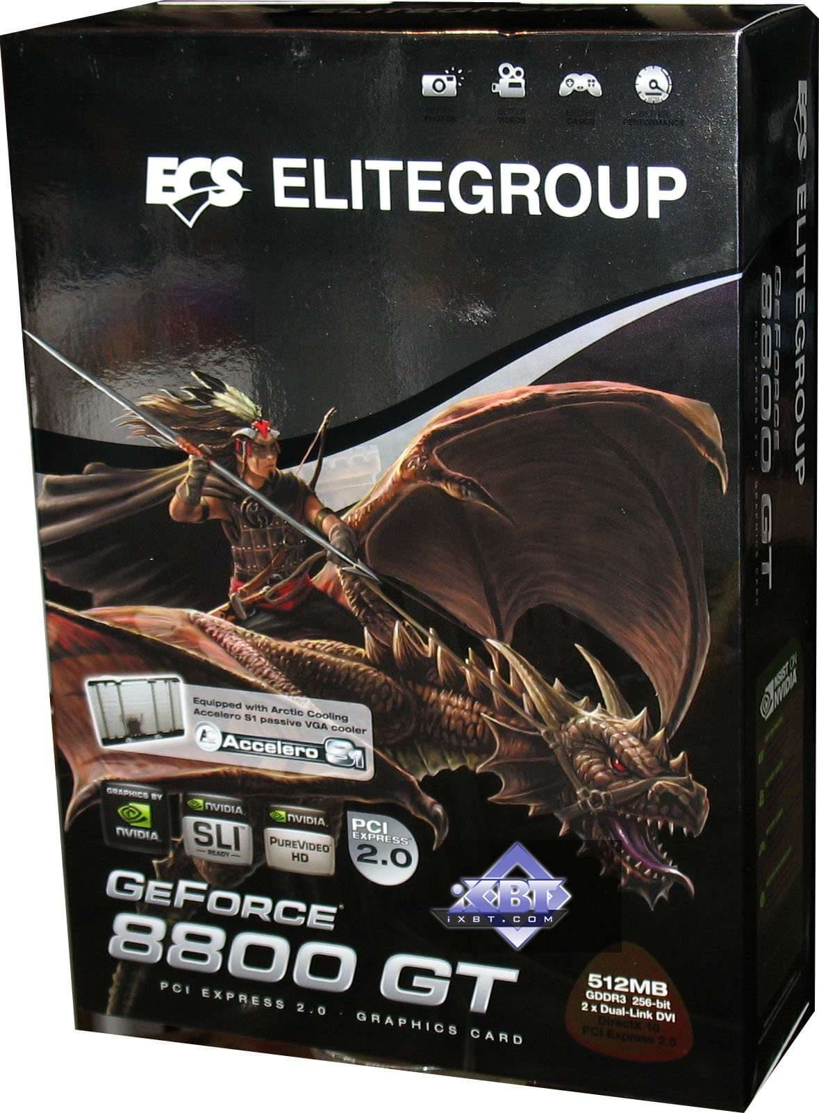 Такие идеи. А мы сегодня изучим, на наш взгляд, самый интересный 8800 GT, что появится на рынке, продукт компании ECS/Elitegroup. Мало того, что он оснащен пассивной системой охлаждения, то есть вентиляторы могут на нее устанавливаться по желанию владельца карты, опционально. Так еще и частоты повышены весьма сильно.