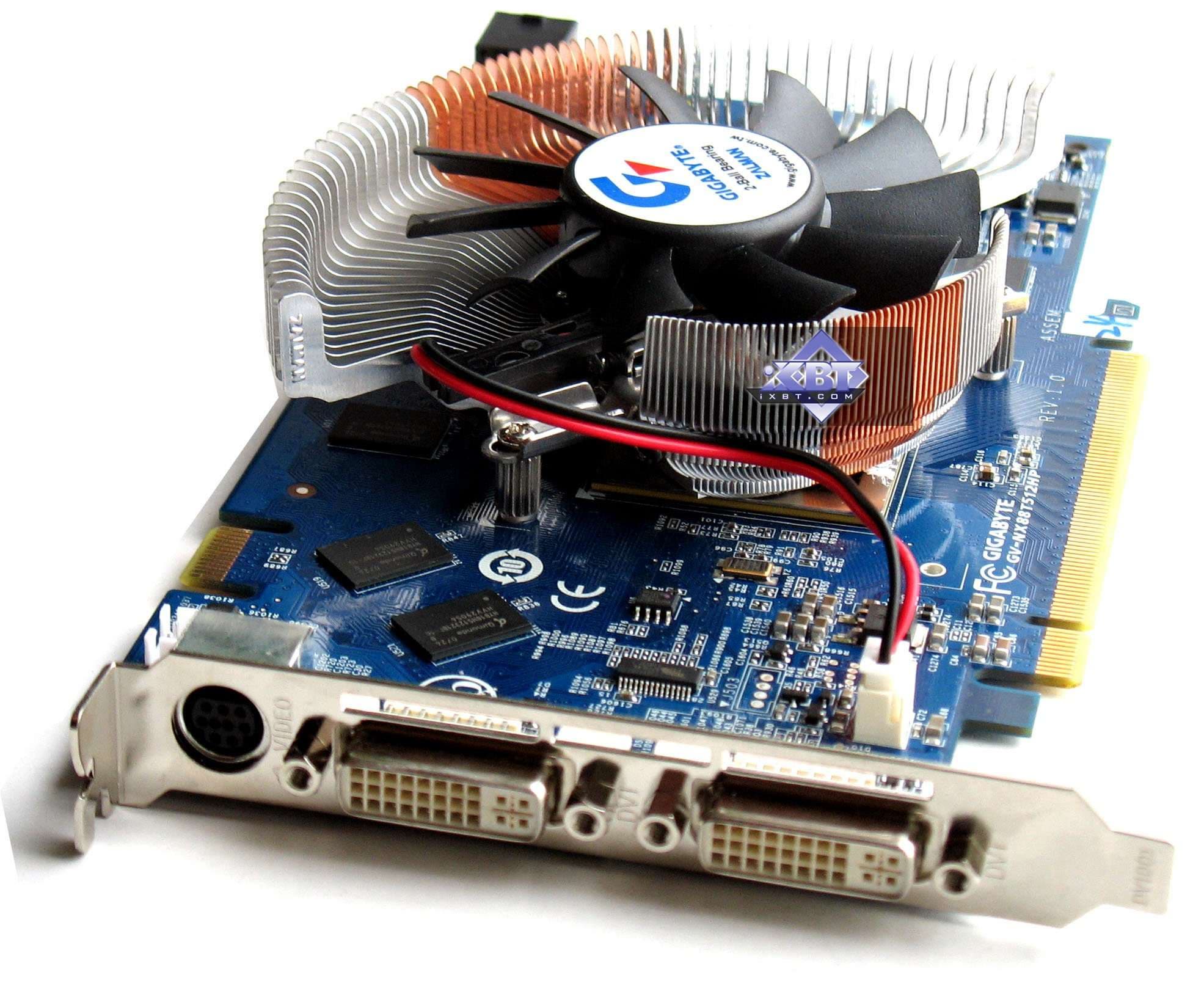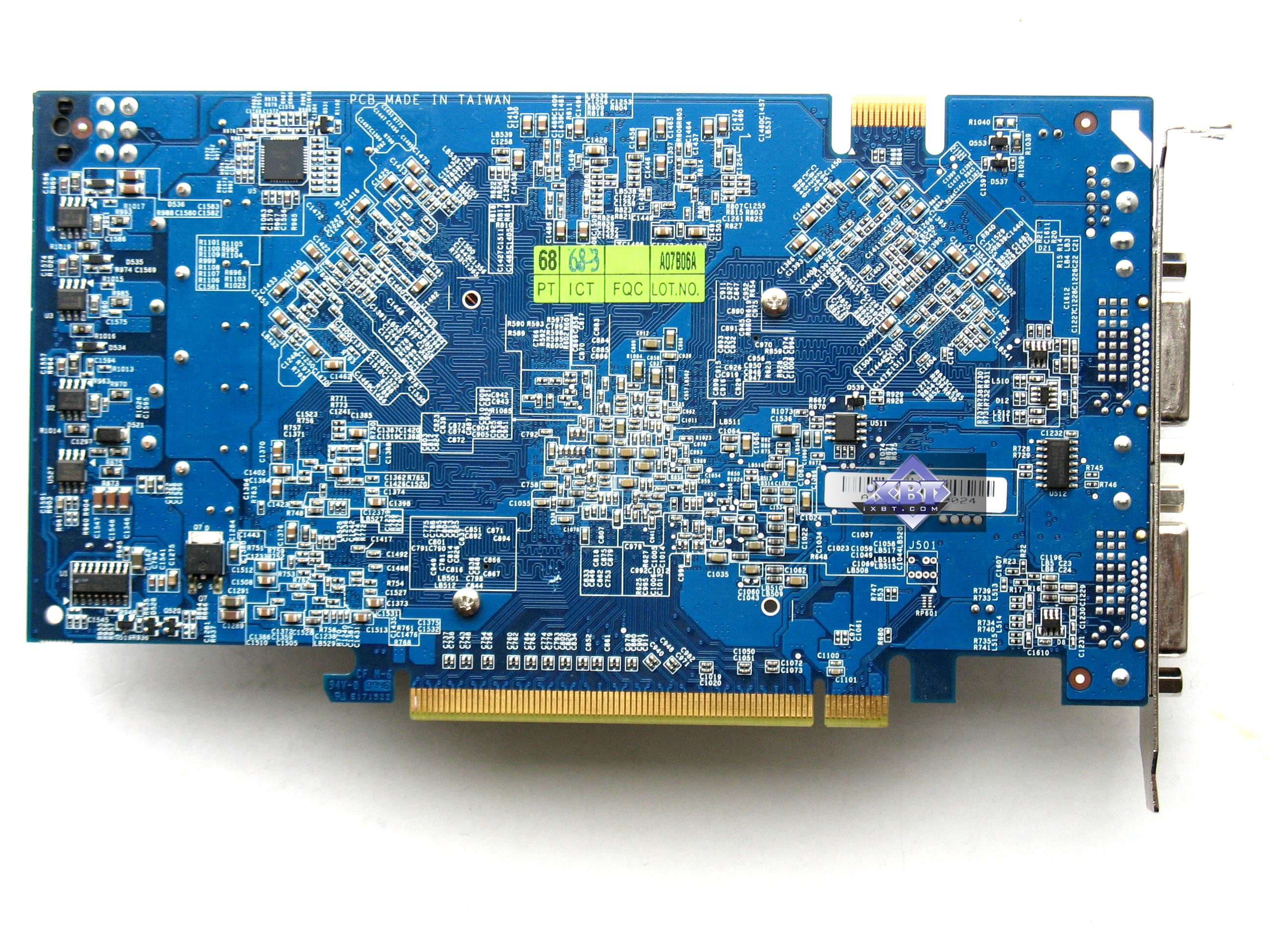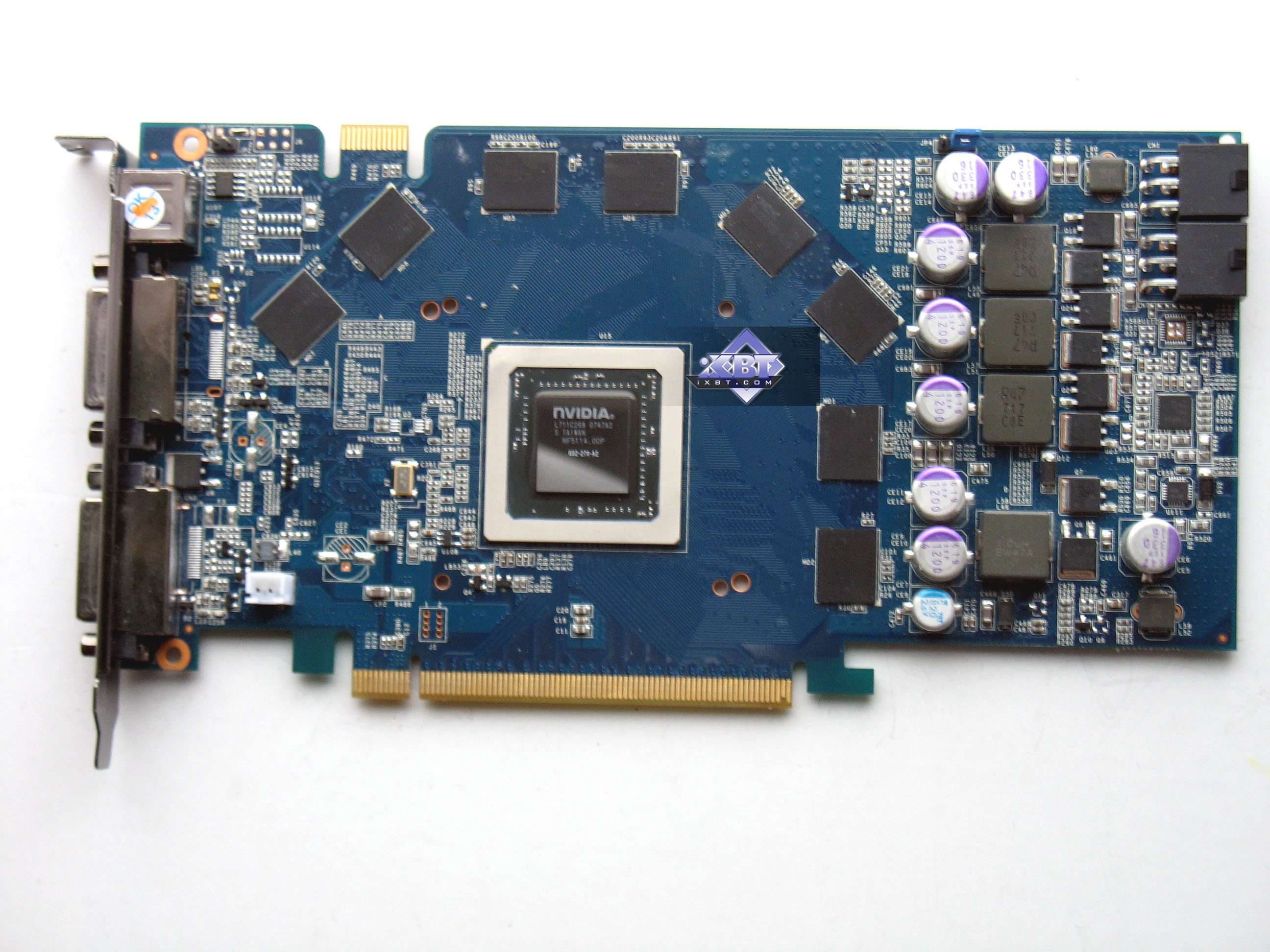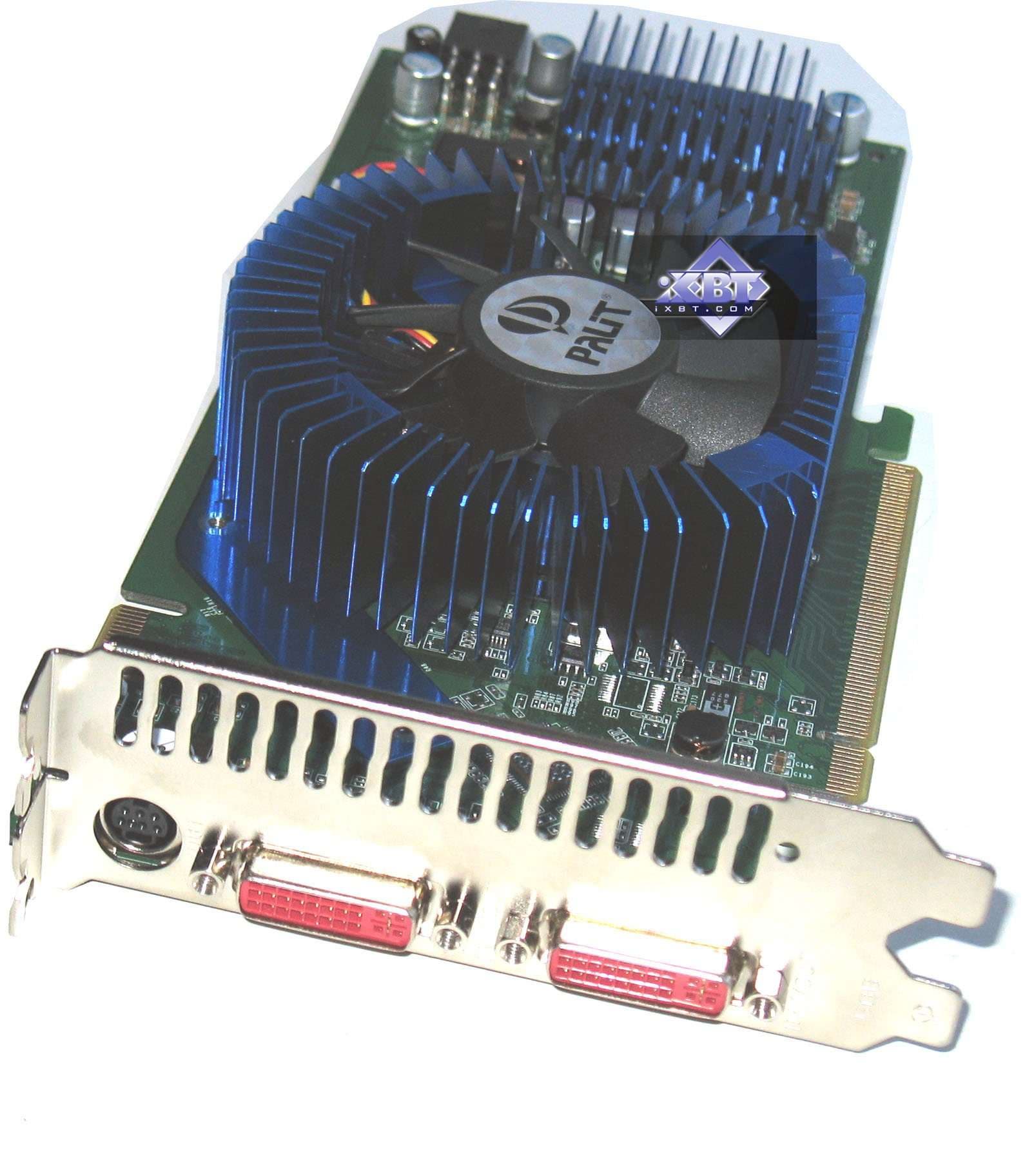 А вот остальные акселераторы имеют в какой-то степени вмешательство производителей. Карта от Galaxy — вообще уникального дизайна, имеет джампер для увеличения напряжения на ядре, что позволяет усилить оверклокерский потенциал карты. Продукты Leadtek, Gigabyte, Gainward, Palit имеют уникальные системы охлаждения, вместе с тем карта от Gainward несет на себе аж целый гигабайт памяти, что не могло не сказаться в разводке PCB.