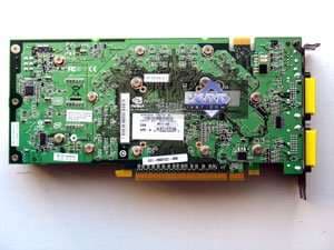 | Каждая карта имеет 512 МБ памяти GDDR3 SDRAM, размещенной в 8 микросхемах на лицевой стороне PCB. Микросхемы памяти Samsung (GDDR3). Время выборки у микросхем памяти 1.0 ns, что соответствует частоте работы 1000 (2000) МГц. | ![]() |