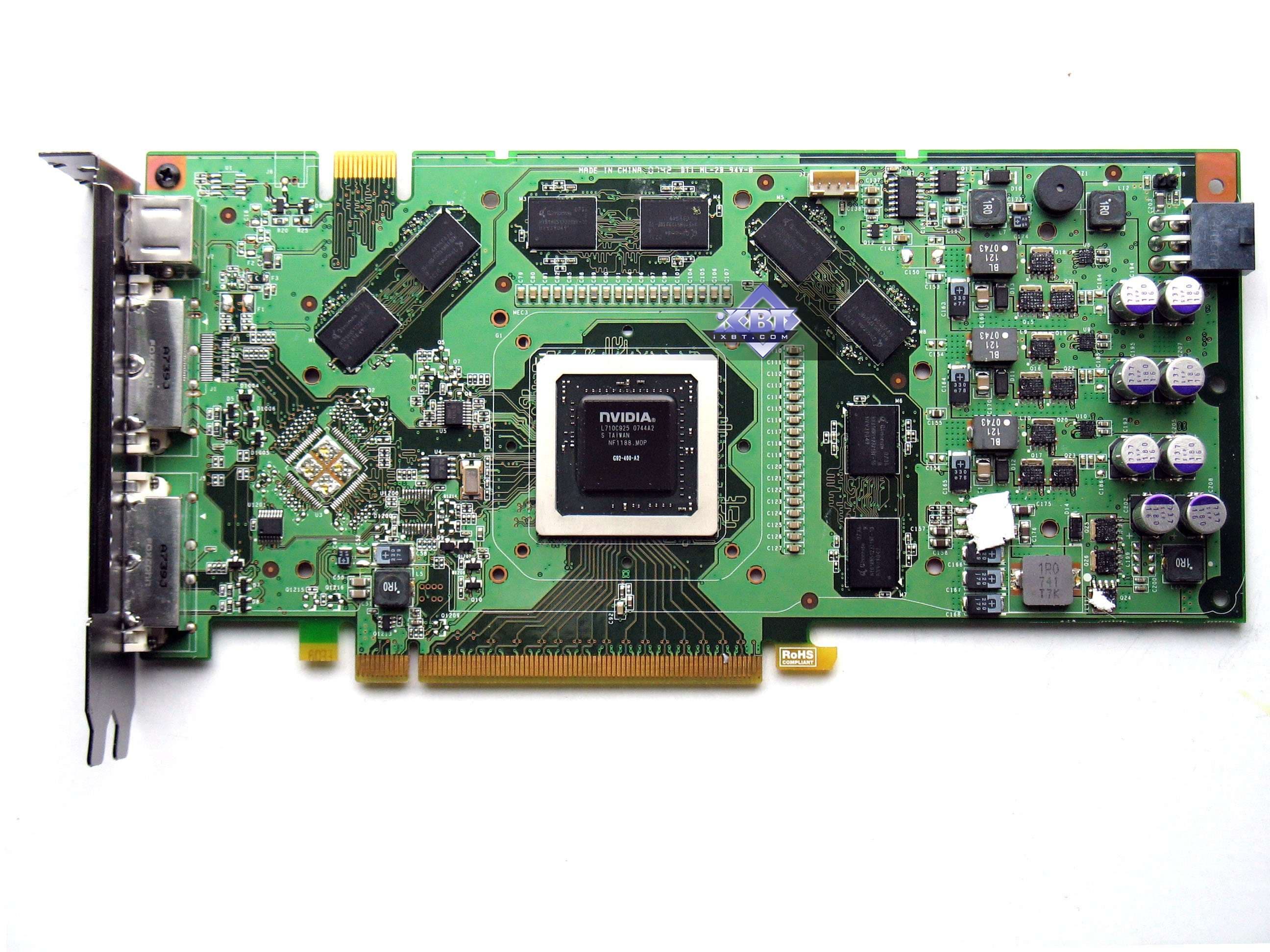 Время идет своим чередом, и вот уже былые фавориты и где-то уникальные акселераторы на базе G80 (Geforce 8800 GTX/GTS) уходят в прошлое. Уникальны они были тем, что впервые Nvidia реализовала шины обмена с памятью в 320 и 384 бит. А также карты имели особые обьемы памяти в 320, 640 и 768 мегабайт, что также нестандартно. Ведь ранее мы привыкли к чередованиям 128-256-512-1024 мегабайт ОЗУ, а в случае G80 использовались промежуточные варианты. И на примере 8800 GTX мы впервые столкнулись с очень длинными видеокартами длиной в 270 мм, которые поместятся далеко не в каждый корпус. Сам чип G80 имел огромные размеры, был накрыт тяжелой крышкой, при этом блоки вывода информации с карты вообще были выведены в отдельную микросхему.