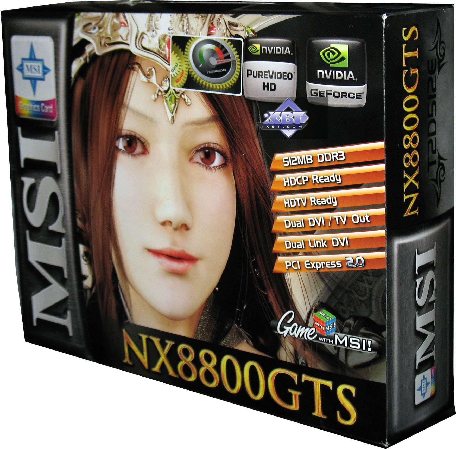 MSI Geforce 8800 GTS OC 512MB PCI-E — стандартный эталонный ускоритель. Как и в случае с Asus, здесь компания MSI не производиля самостоятельно эту видеокарту, а лишь купила уже готовое изделие у Nvidia, поэтому перед нами референс-карта. Кулер тихий, однако нагрев весьма велик. Впрочем, воздух выводится за пределы системного блока, поэтому волноваться нечего. Данный продукт — самый быстрый из всех современных ускорителей, и наверно не найдется такого, кто сможет его обогнать в условиях, когда поставки 8800 Ultra/GTX уже свернуты.