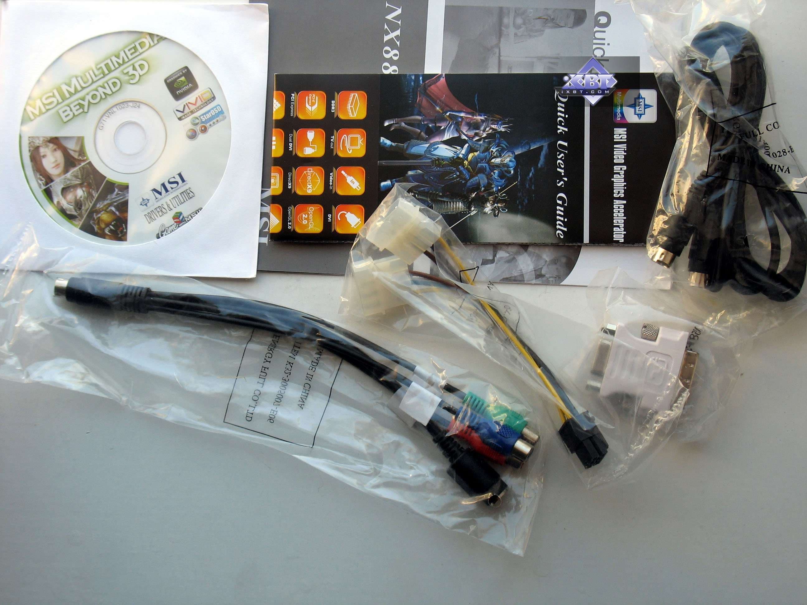Все остальные карты в комплекте имеют руководство пользователя, диск с драйверами и утилитами, переходник-адаптер DVI-to-VGA, адаптер компонентного вывода (TV-out), переходник для внешнего питания. Это базовый, минимальный комплект. Ниже мы покажем, что предлагается каждым вендором дополнительно.