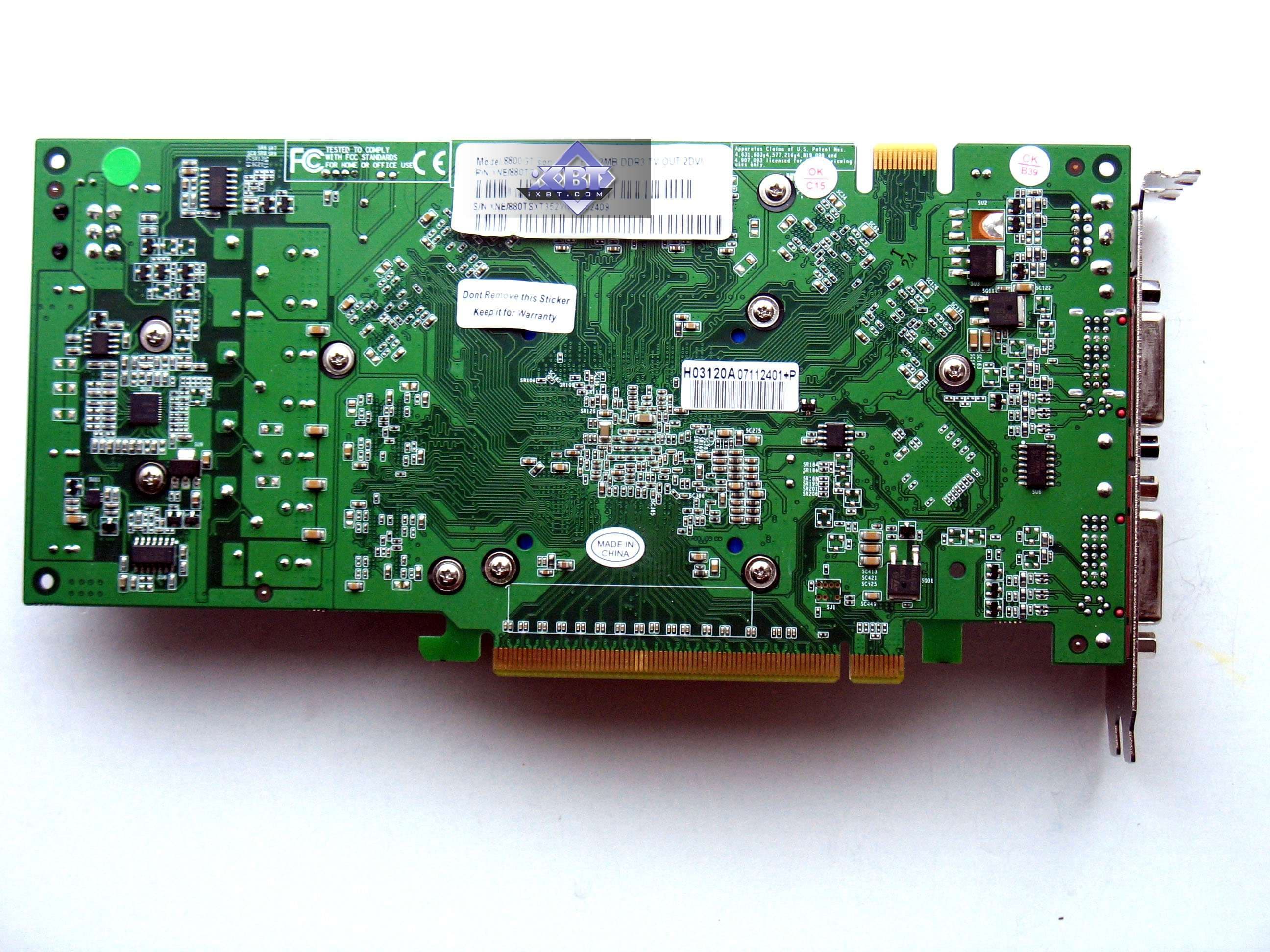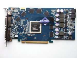 В общем, эти уникальные решения побывали на рынке год, затем ушли в прошлое. Nvidia вернулась к традиционной схеме: 512 мегабайт памяти, 256-бит шина обмена с памятью, да и снова блок вывода помещен внутрь GPU. По сути Geforce 8800 GT очень похож на некогда популярный Geforce 7900 GS (и PCB схожи, и шина такая же, разница лишь в частотах работы памяти, ну и в организации самого графического процессора, то бишь его архитектуре).