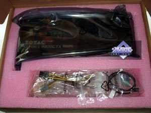 Мы видим традиционные оранжевые тона упаковки от Zotac. Жаль, что перестали делать упаковку с окном, через которое видно карту. Сама коробка из толстого картона, комплект разложен по отсекам, а сама карта в коробочке из пенополиуретана, что очень хорошо для транспортировки. | ![]() |