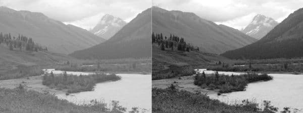 Динамическое улучшение контрастности довольно часто используется в бытовой технике, в телевизорах и видеоплеерах, оно может улучшить изображение с неоптимальной экспозицией (сочетание выдержки и диафрагмы). Для этого, после декодирования каждого кадра, анализируется его гистограмма, и если у кадра неудачная контрастность, гистограмма пересчитывается и применяется к изображению. Вот пример (слева — начальное изображение, справа — обработанное):