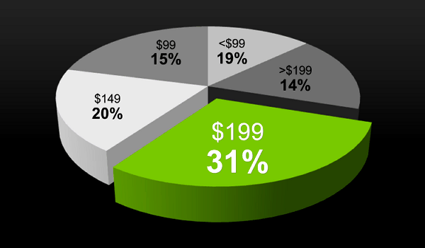 Но и сейчас время выхода GTX 460 может стать вполне приемлемым, да и само решение грозит быть весьма удачным, как нам кажется. По исследованиям Nvidia, типичный покупатель меняет видеокарту (или всю систему) раз в три года, и тратит на неё порядка $200-250. По данным статистики Steam Hardware Survey, 31% пользователей имеют видеокарты этого ценового диапазона (55% ещё дешевле, и менее 15% более дорогие).