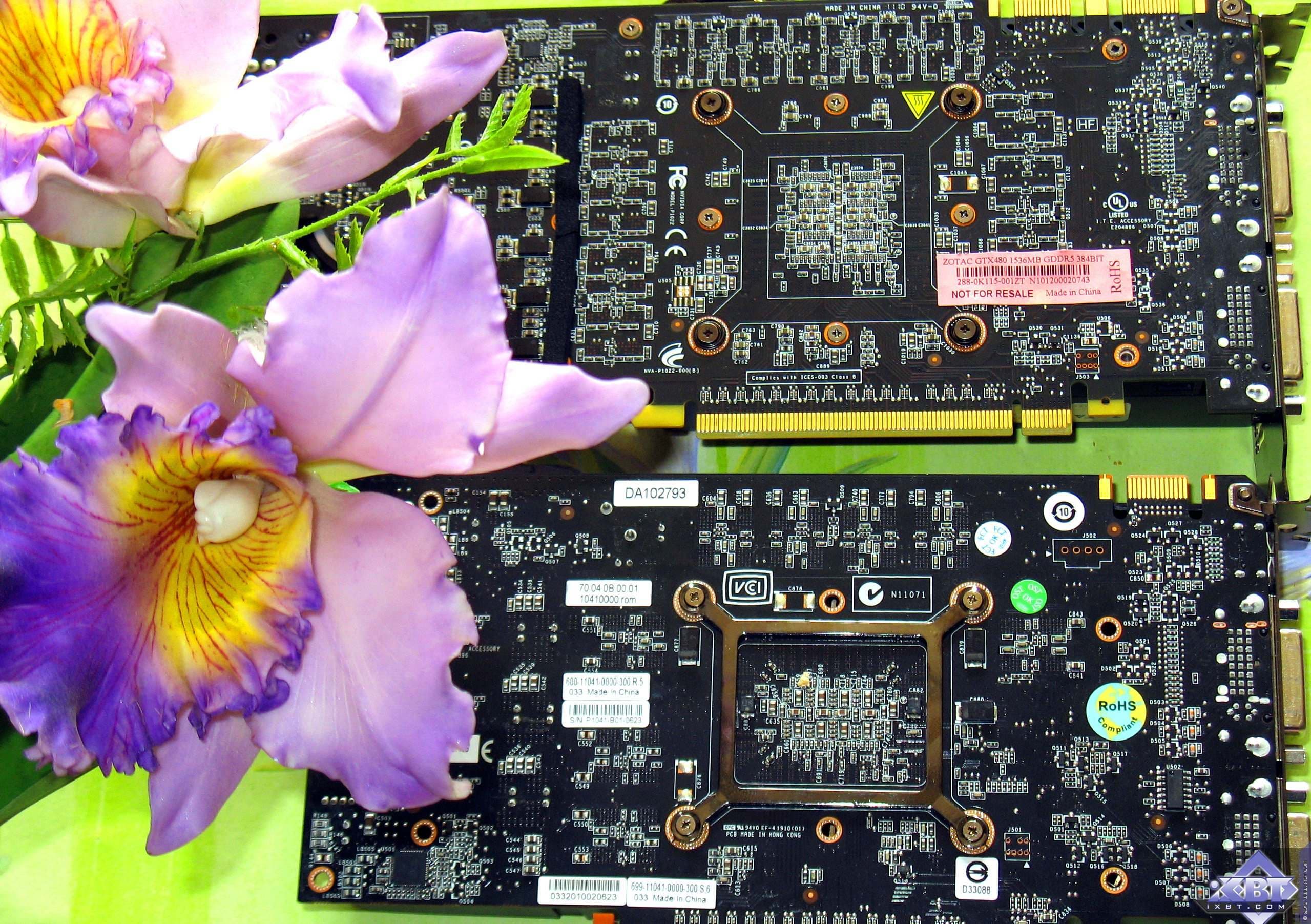 Все эти отличия связаны с количеством активных 64-битных каналов памяти. У 768-мегабайтной версии их три, а у 1024-мегабайтной четыре. Соответственно, отличается и количество установленных на PCB микросхем памяти. Не совсем понятно, зачем в Nvidia решили сделать две модели под одним и тем же названием, отличающиеся таким образом. К слову, немного отличается и потребление энергии: 150 Вт у младшей версии, и 160 Вт у старшей.