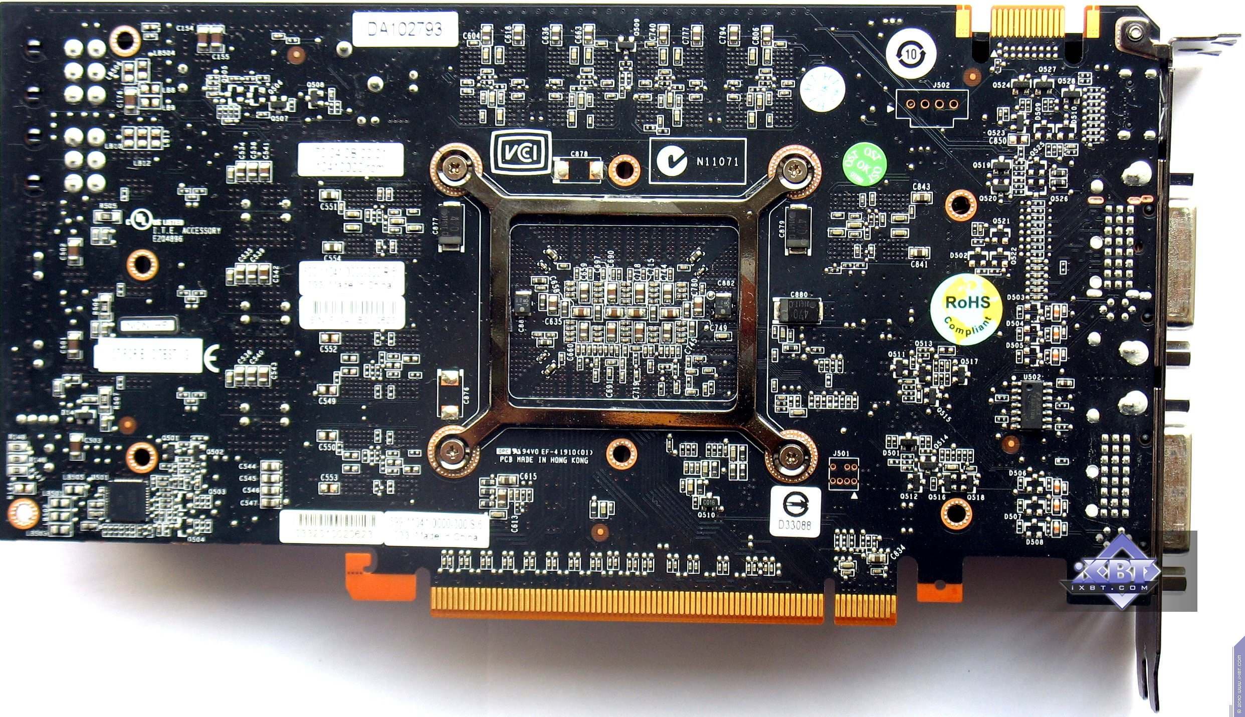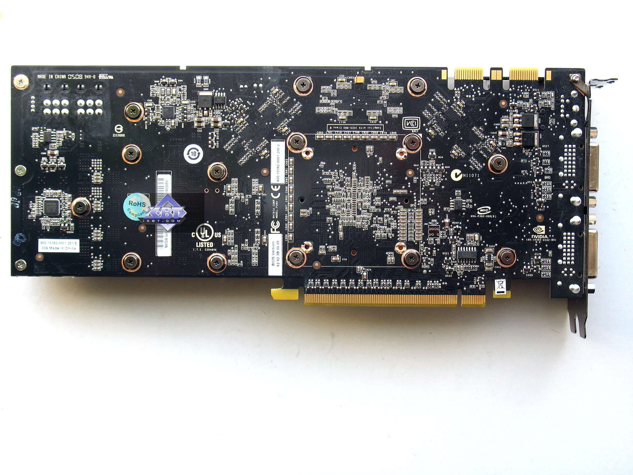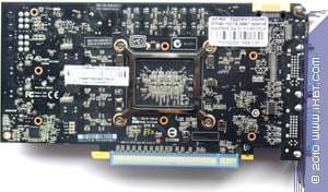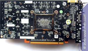 Еще можно также с уверенностью сказать, что данная PCB - универсальна, и на ней разведена шина обмена с памятью 256 бит, просто не установлено 2 микросхемы памяти (в итоге 6 вместо 8), и таким путем получилась шина 192 бит и объем памяти 768 мегабайт. Если карту укомплектовать всеми 8-ю микросхемами памяти, то получится шина 256 бит и объем памяти 1024 мегабайт. Таким образом, будущие «более старшие» GTX 460 с 1GB памяти будут базироваться на той же PCB и скорее всего иметь ту же СО.