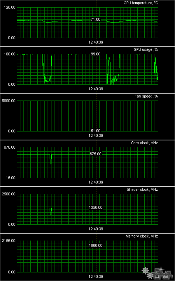 Мы провели исследование температурного режима с помощью утилиты EVGA Precision (автор А. Николайчук AKA Unwinder) и получили следующие результаты: