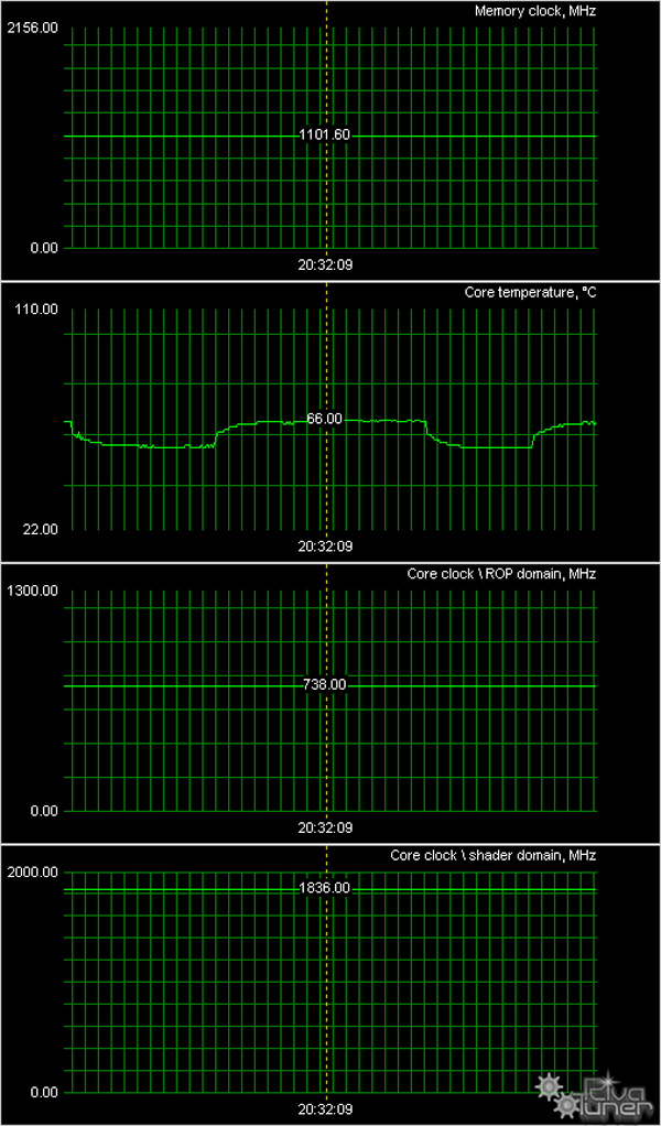 Для обеих карт мы провели исследование температурного режима с помощью утилиты RivaTuner (автор А. Николайчук AKA Unwinder) и получили следующие результаты: