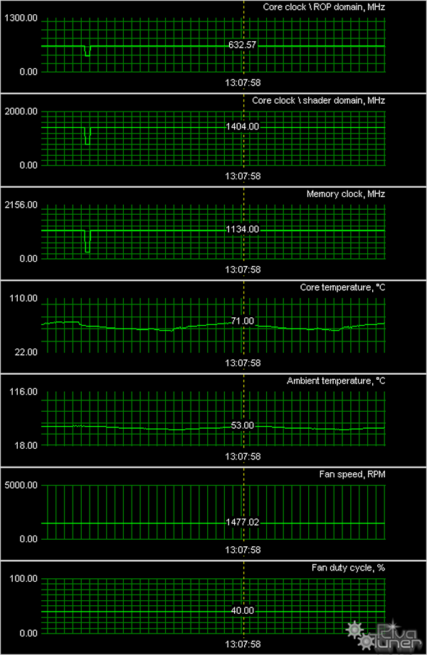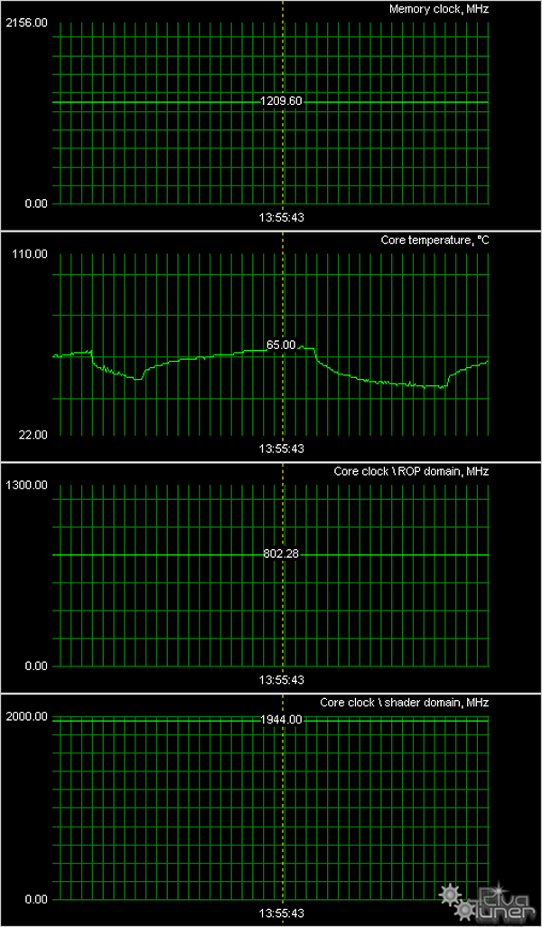 Для всех карт мы провели исследование температурного режима с помощью утилиты RivaTuner (автор А.Николайчук AKA Unwinder) и получили следующие результаты:
