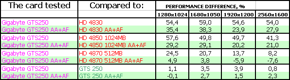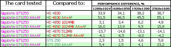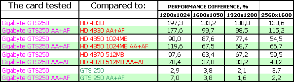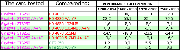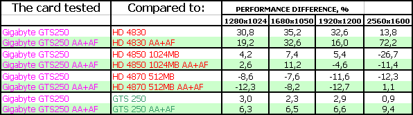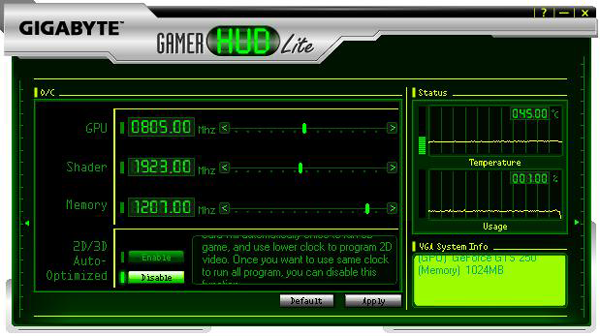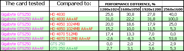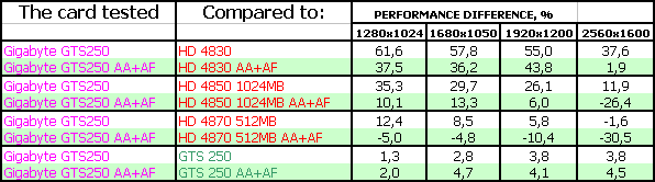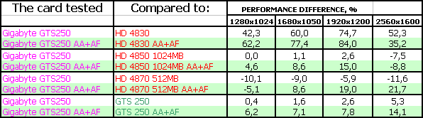 Особо стоит отметить то, что GTX 275 от Gigabyte ничем не отличается по частотам от референс-продукта, потому не нужды делать снова сравнительный анализ по этой карте. Все детали есть в этом материале.