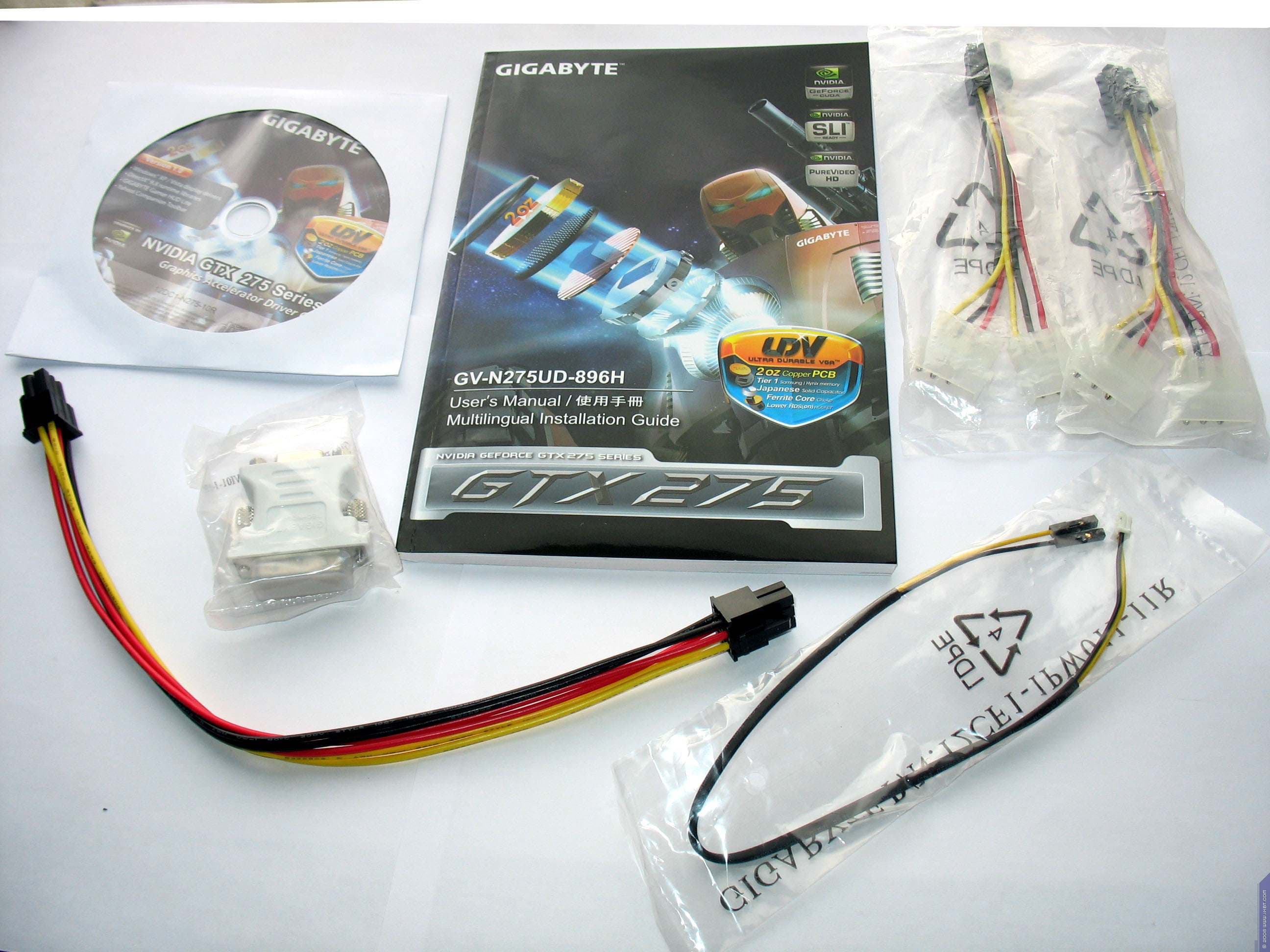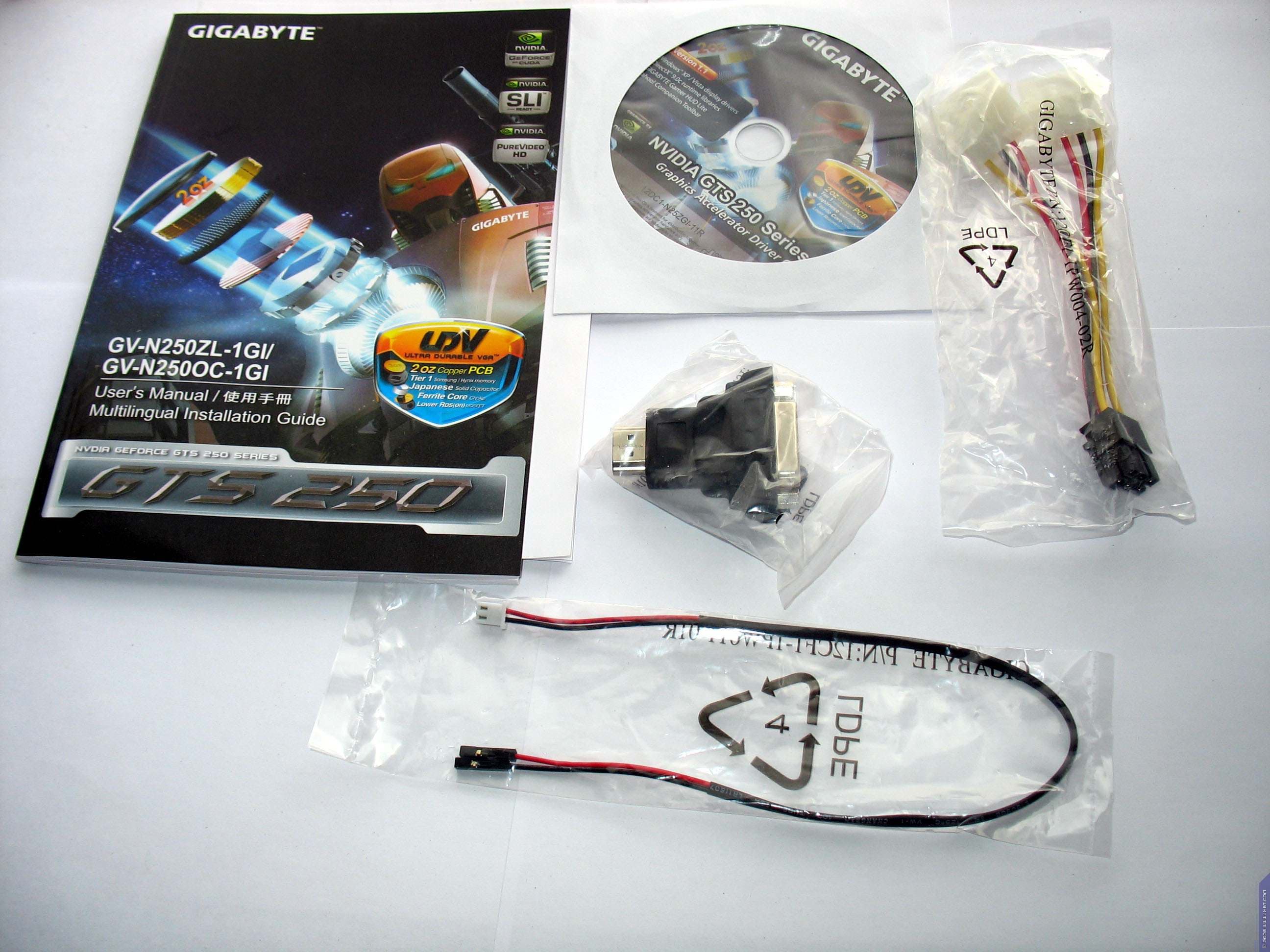 Базовый комплект поставки должен включать в себя: руководство пользователя, диск с драйверами и утилитами, переходник-адаптер DVI-to-VGA, DVI-to-HMDI адаптер (кроме GTS 250), адаптер компонентного вывода (TV-out, для GTX 275), аудио-шнурок для вывода на HDMI, а также разветвители внешнего питания. Далее мы покажем, что предлагается к каждой карте дополнительно.