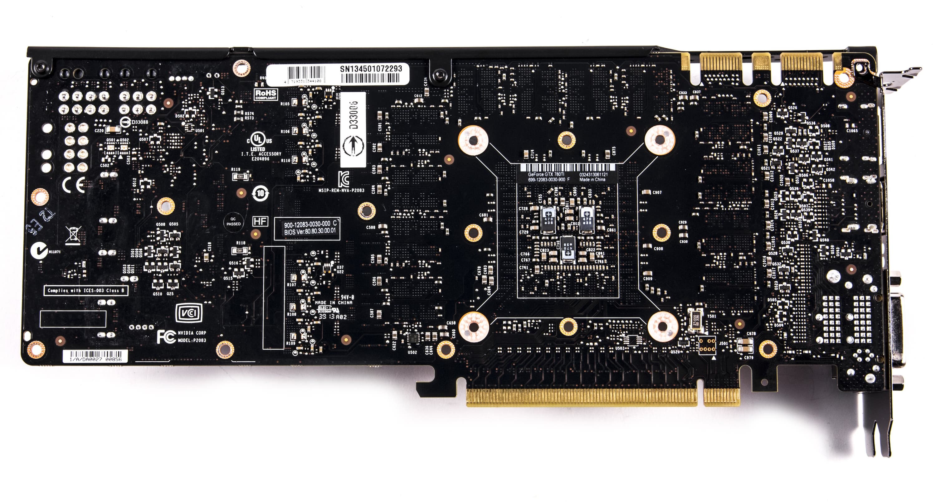 Мы видим по сути полную копию эталонного дизайна. Схема питания 6-фазная, управляемая цифровым контроллером. Все остальное схоже с разводкой ранее изученных нами печатных плат для GTX Titan/780.