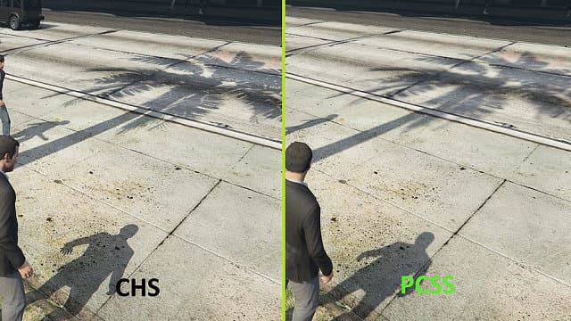 Явно видно, что метод PCSS позволяет получить мягкие края теней, которые прогрессивно замыливаются тем больше, чем дальше расстояние между объектом, от которого тень, и поверхностью, «принимающей» тень. При этом, включение PCSS почти не сказывается на итоговой производительности в игре. Хотя этот метод обеспечивает лучшее качество и реализм теней, включение этой опции практически «бесплатно» для производительности.