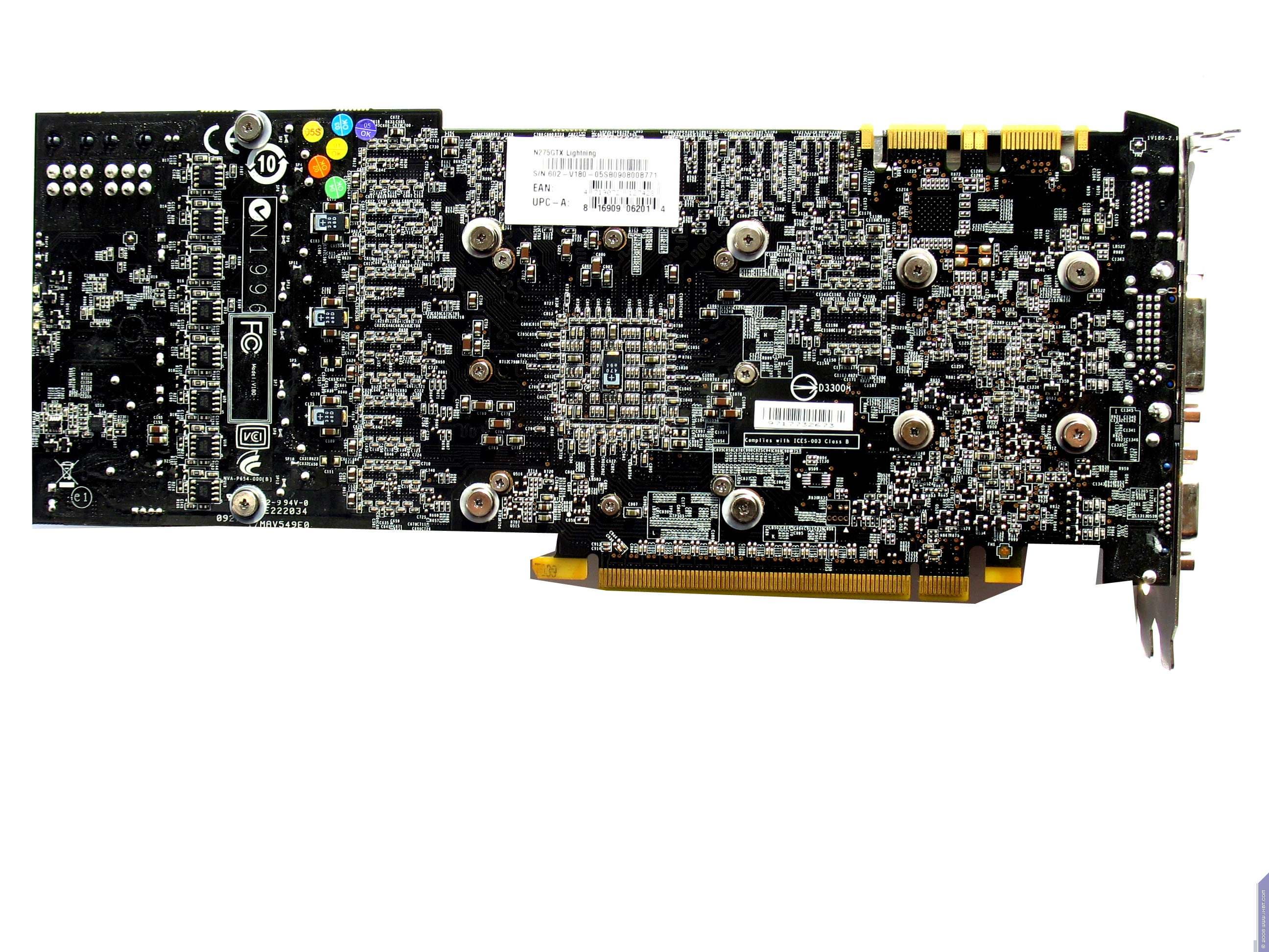Теперь о кулере. Система охлаждения принципиально не отличается от того варианта, что мы видели еще на GTX 260 Lighting. Уменьшены лишь размеры радиатора.