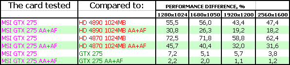 - Far Cry 2 (Ubisoft) DirectX 10.0, shaders 4.0 (HDR), для тестирования использовалась утилита из комплекта игры (уровень Middle). Все настройки выставлены на максимальное качество.
