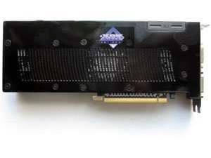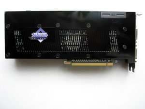 Напоминаем еще раз важный момент: длина ускорителя — 270 мм, как у 8800 GTX/Ultra, поэтому в корпусе должно быть достаточно места для установки такой конструкции. А также обратим внимание на ширину кожуха, которая неизменна вдоль всей длины, а следовательно на материнской плате за PCI-E x16 разъемом не должно быть никаких портов и высоких конденсаторов, причем на ширину 30 мм (то есть не только за самим слотом PCI-E, но за соседним с ним не должно быть никаких высоких частей на системной плате).