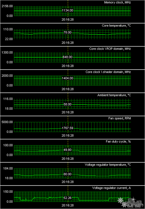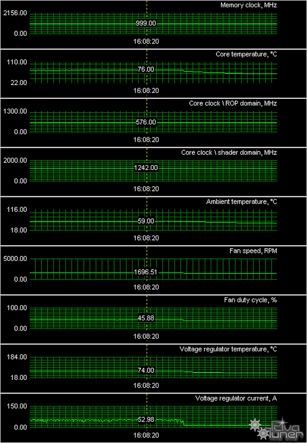 Мы провели исследование температурного режима с помощью утилиты RivaTuner (автор А.Николайчук AKA Unwinder) и получили следующие результаты:
