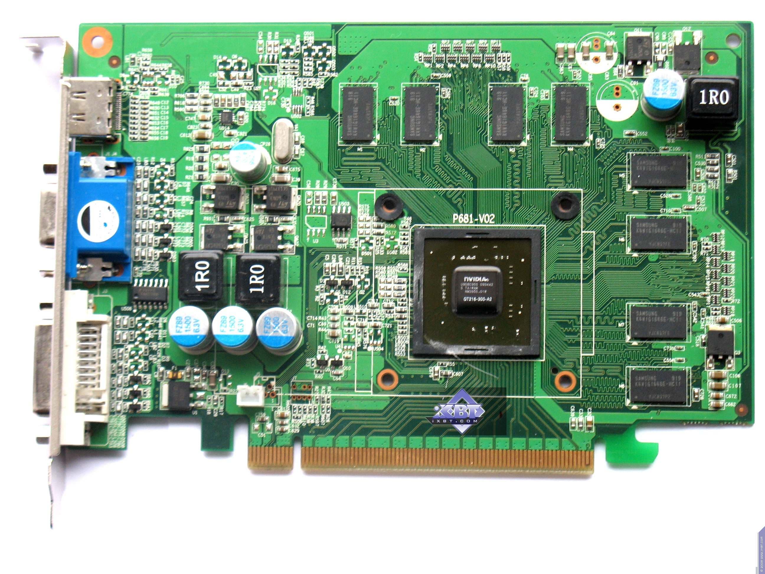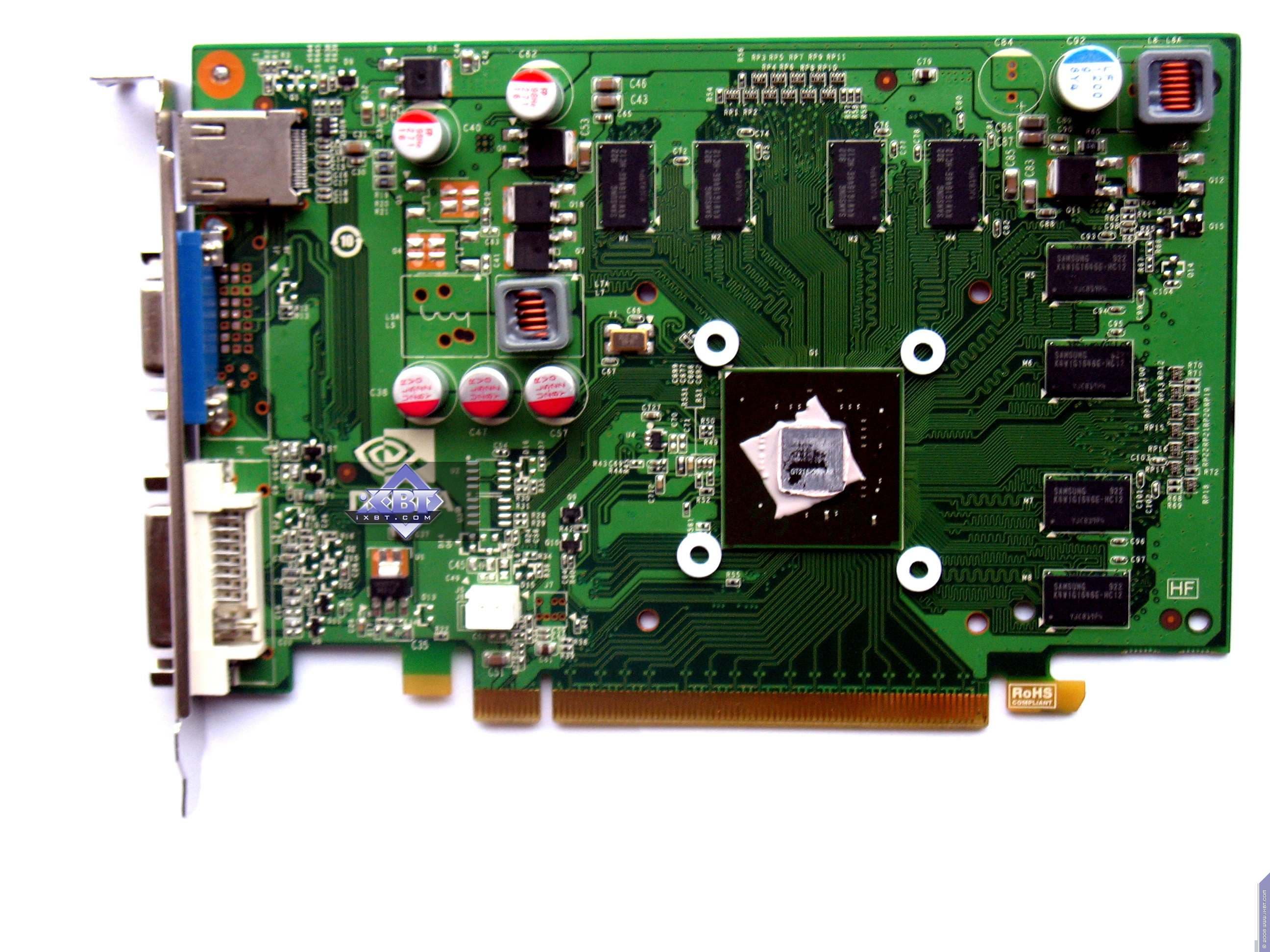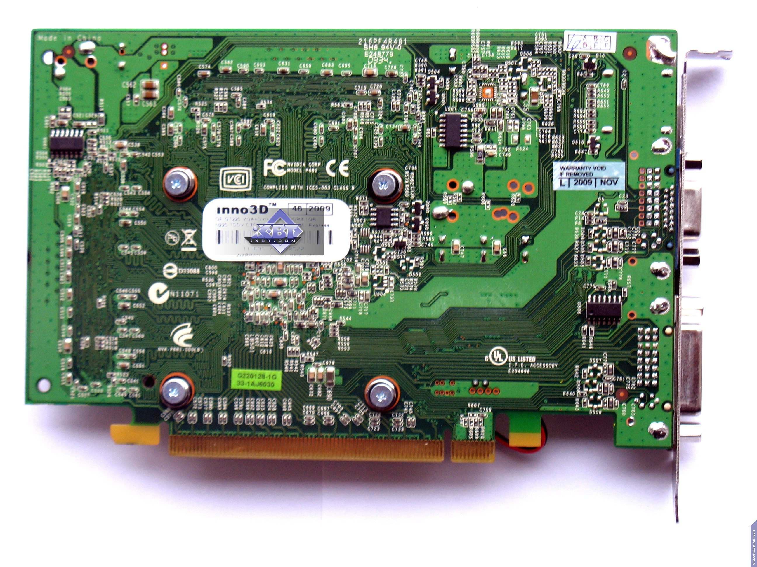 Очевидно, что все карты имеют довольно простой дизайн, связанный с 128-битной шиной обмена с памятью (дизайн подчас схож с 9500 GT). Точно также понятно, почему продукт от Gainward имеет в 2 раза меньше микросхем памяти, чтобы обеспечить объем в 512 мегабайт (а не 1024, как у остальных карт).
