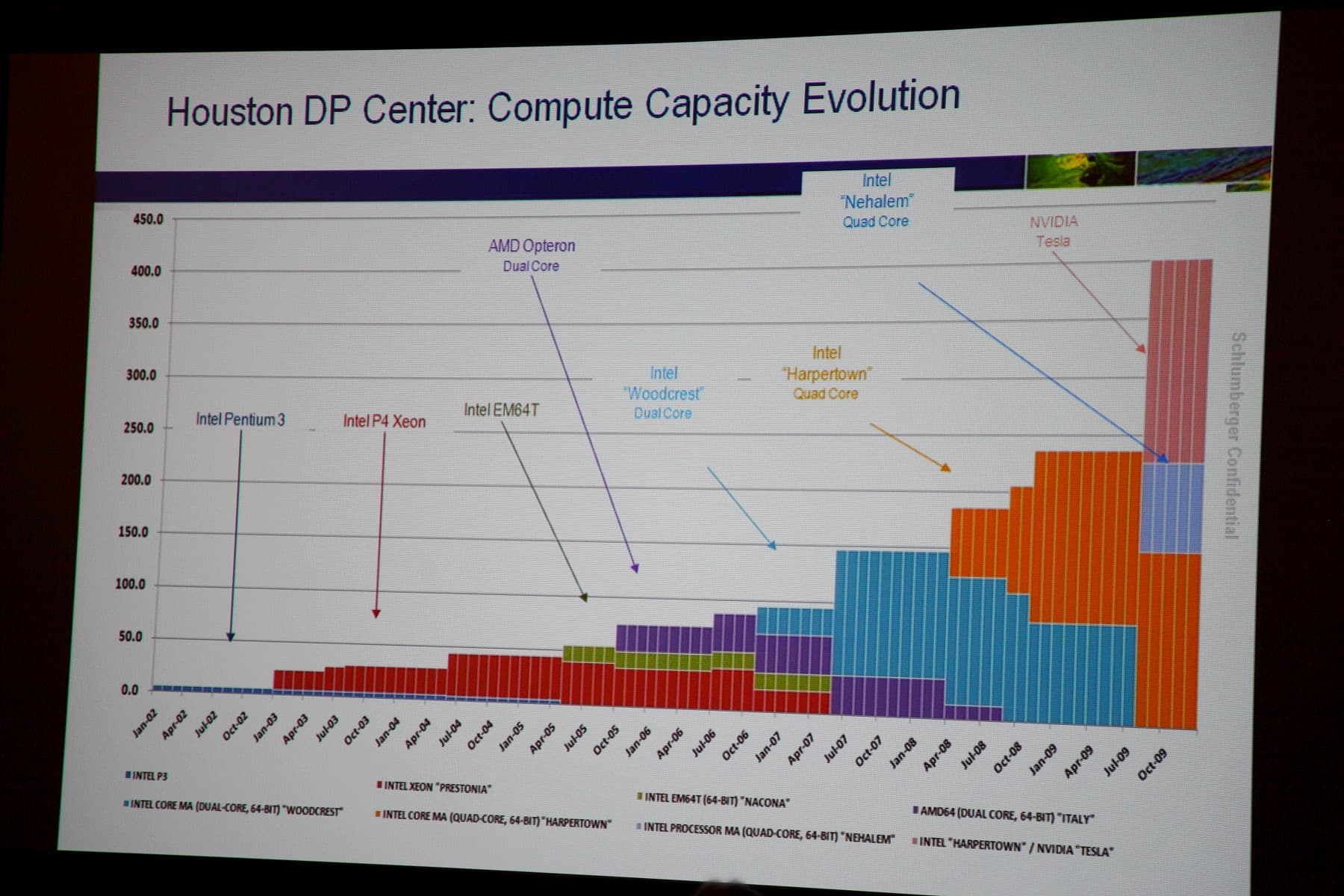 Интересно, что компания Schlumberger использует разные вычислительные платформы, в качестве универсальных процессоров применяются архитектуры компаний Intel и AMD, а вот ускорители вычислений не все смогли показать свою применимость. Лишь GPU оказались довольно успешны в этом деле, показав кратные приросты в скорости, по сравнению с лучшими CPU: